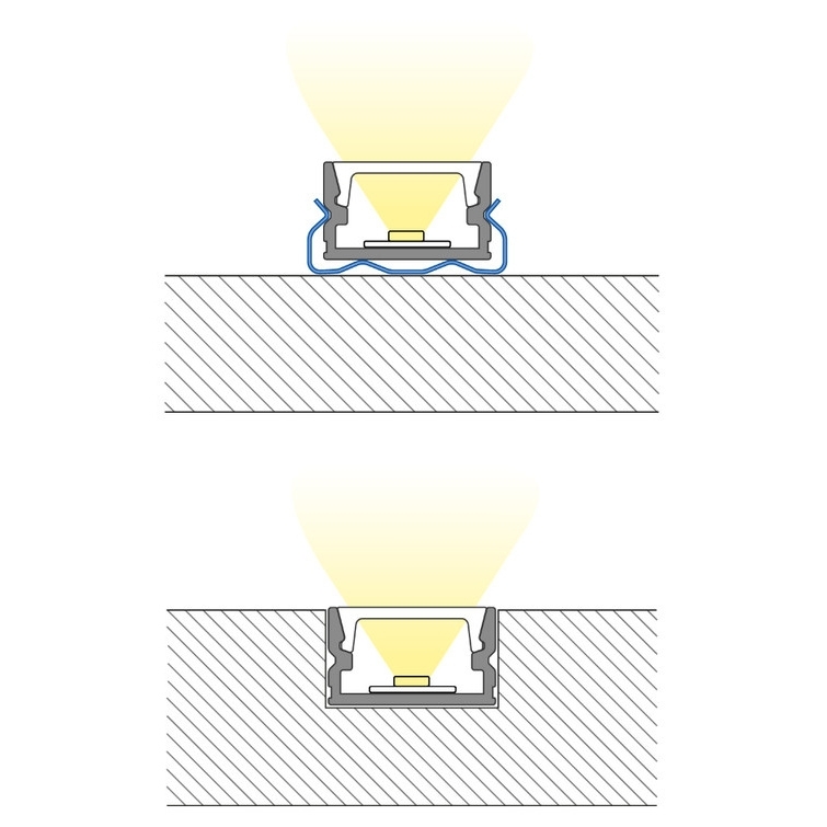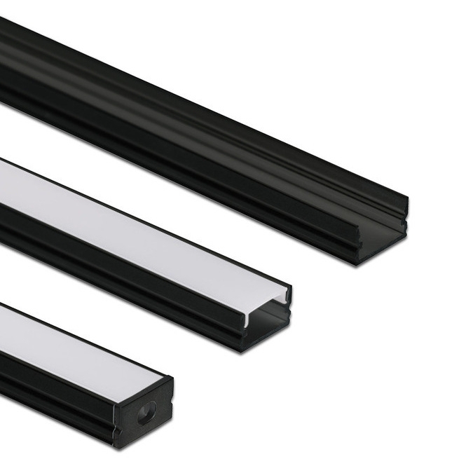 Přisazený hliníkový profil v černém provedení s mléčným difuzorem pro LED pásky.