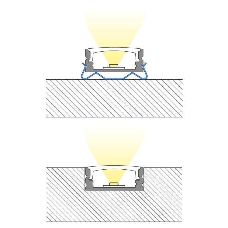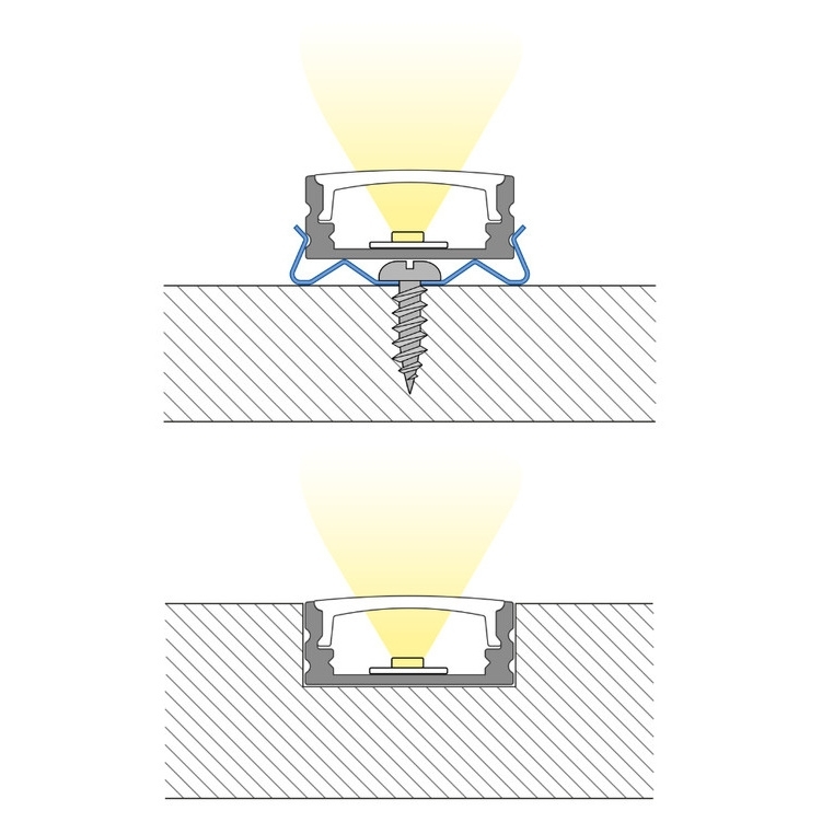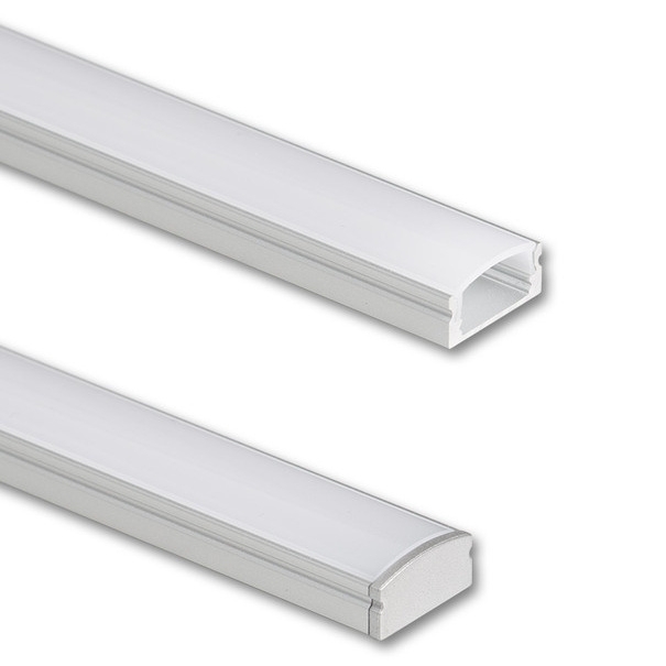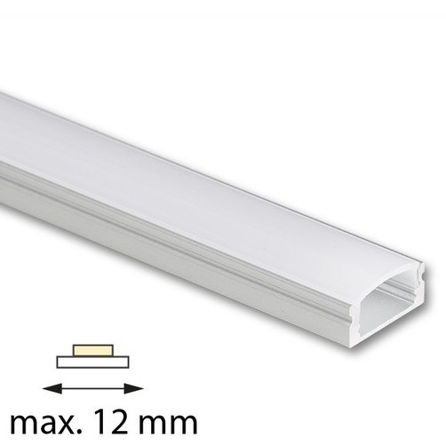 Přisazený hliníkový profil pro LED pásky s čirým difuzorem o délce 1 m.