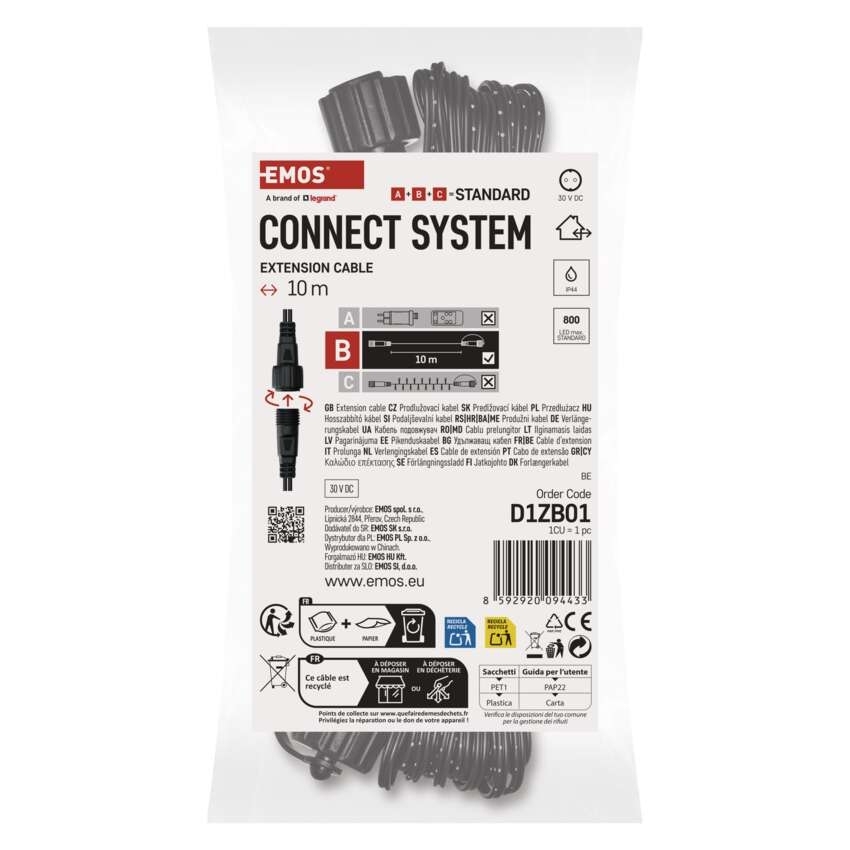 EMOS Prodlužovací kabel pro spojovací řetězy Standard černý, 10 m, venkovní i vnitřní