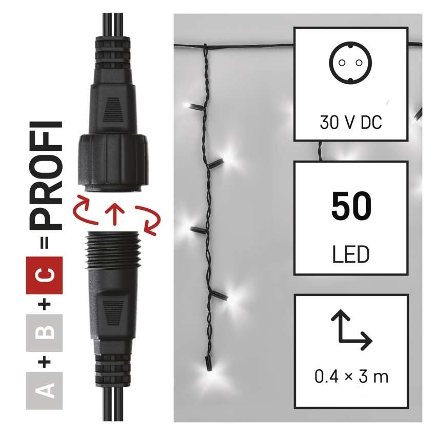 Profi LED spojovací řetěz černý – rampouchy, 3 m, venkovní, studená bílá