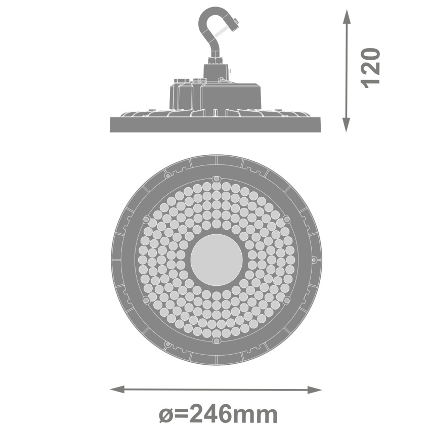 LEDVANCE HB V 95W 840 60DEG IP66 je svítidlo HIGH BAY s jmenovitým výkonem 95,00 W a světelným tokem 16700 lm. Teplota chromatičnosti je 4000 K, barva světla studená bílá a index podání barev Ra 80, vyzařovací úhel 60°. Svítidlo má stupeň krytí IP66, rázovou odolnost IK10 a třídu ochrany I. Průměr je 246,00 mm, výška 120,00 mm a hmotnost 1100,00 g. Materiál těla je aluminum, materiál obalu polykarbonát (PC), barva černý. Typ montáže závěsné / povrchové, prostředí aplikace indoor, stmívatelné ne, vyměnitelný světelný zdroj ne.