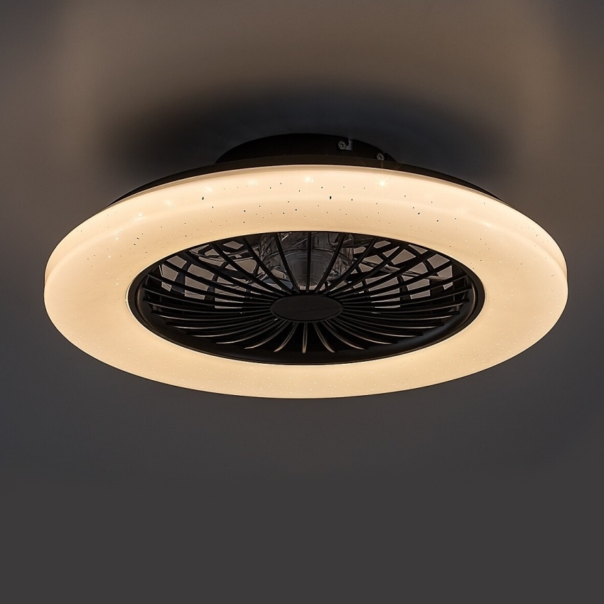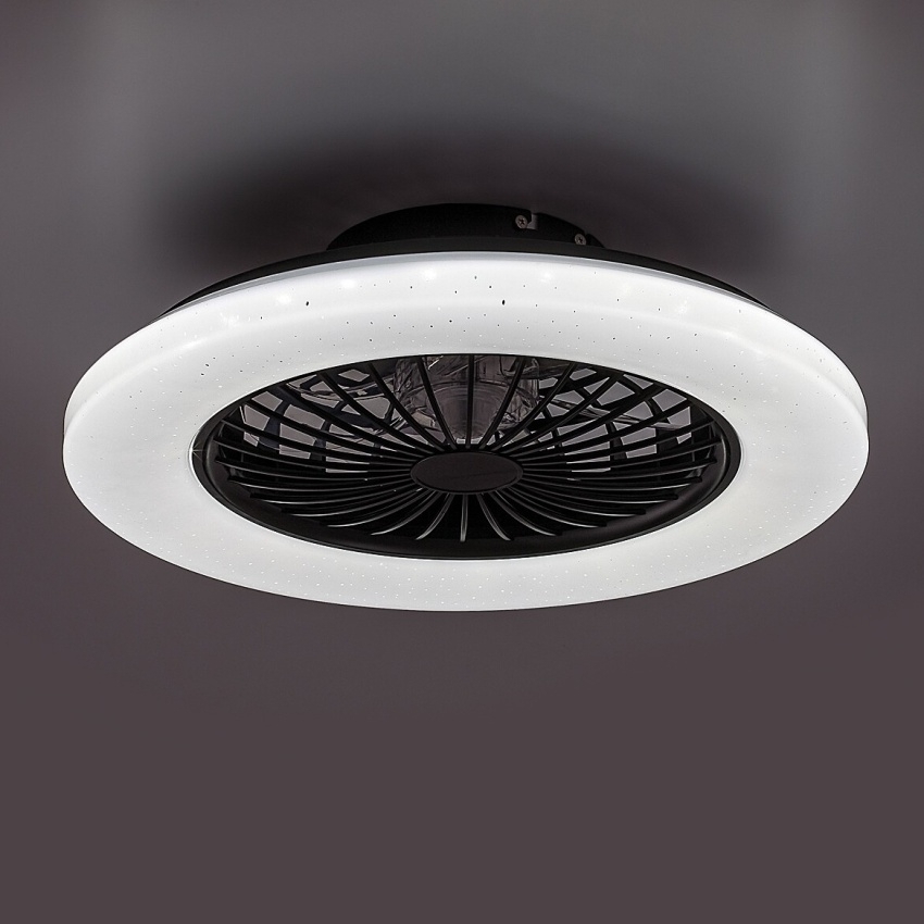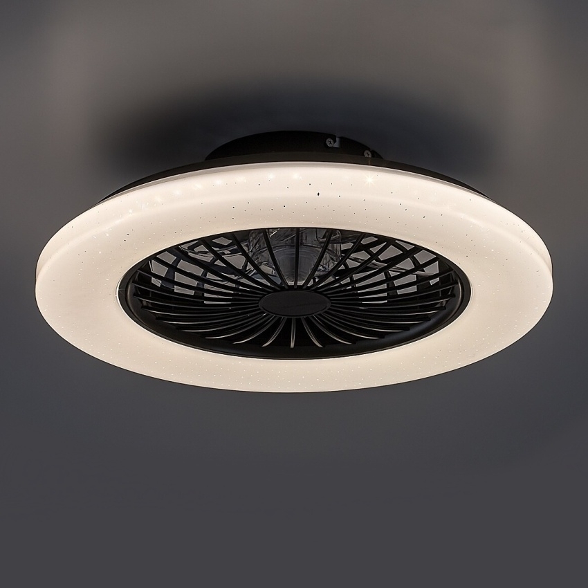 Stropní LED svítidlo s ventilátorem, stmívatelné, dálkové ovládání, paměť, časovač, hvězdný efekt