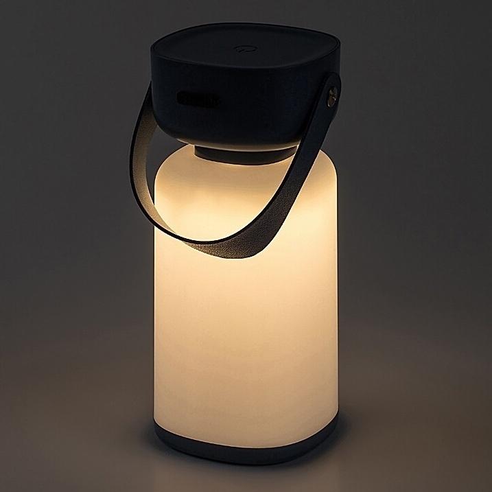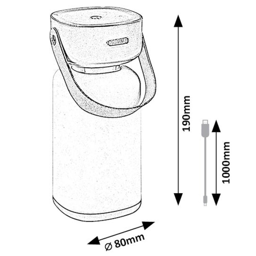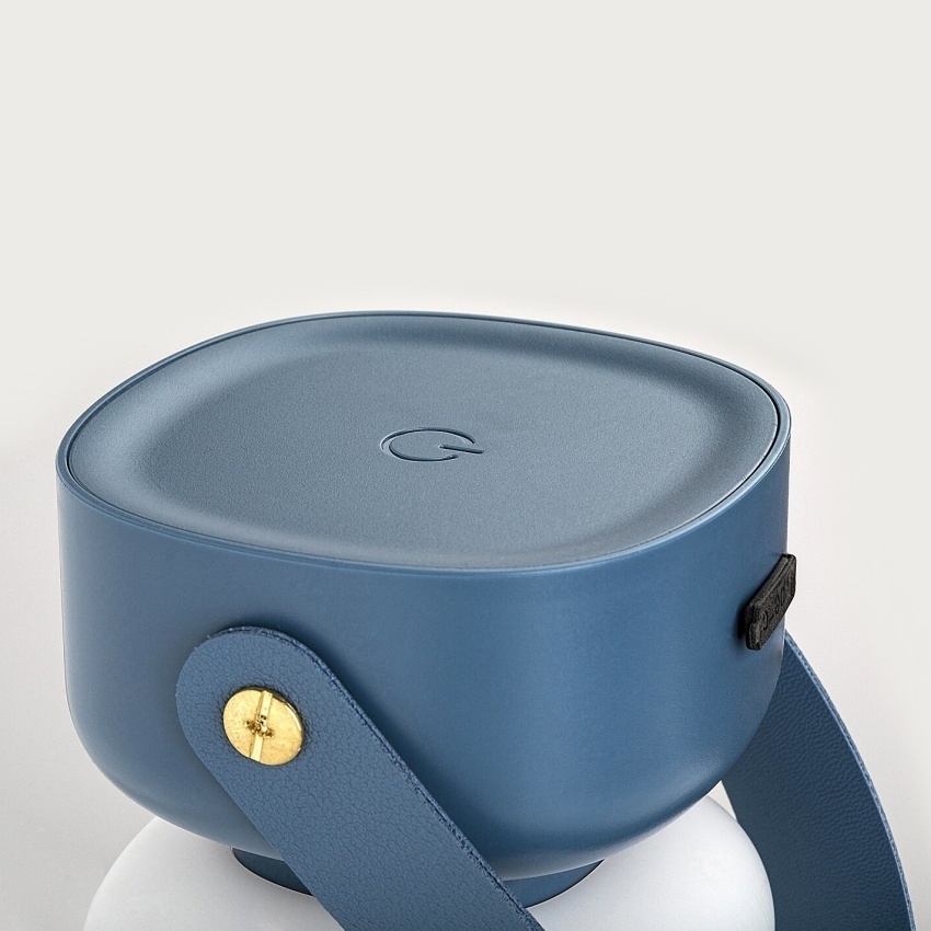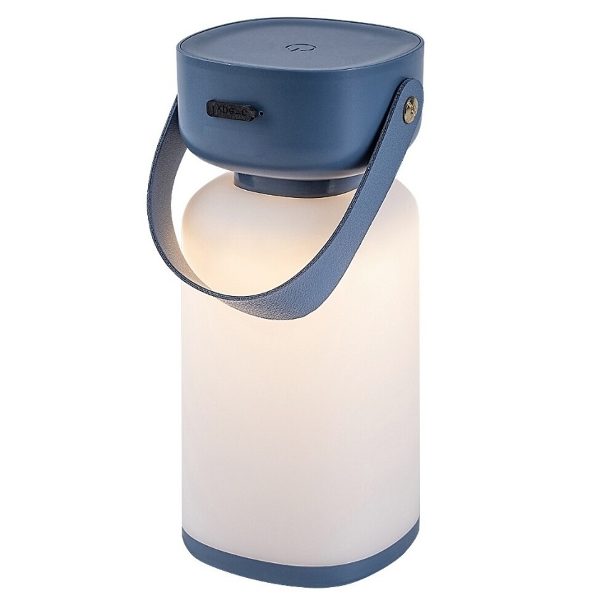 Designová venkovní LED stolní lampa RAB FUNES v severském stylu kombinuje elegantní vzhled s funkčností a přenosností. Tělo z modrého plastu je doplněno bílým stínidlem a praktickým držadlem s koženou imitací. Lampa nabízí nastavitelný jas a teplotu světla v rozsahu 2800 až 6500 K, ovládané pomocí dotykového spínače. Je vybavena integrovanou baterií s kapacitou 1200mAh, která umožňuje až 10 hodin provozu po 3 hodinách nabíjení přes USB-C kabel. Díky krytí IP44 je vhodná pro venkovní použití na terase, v zahradě nebo altánu.