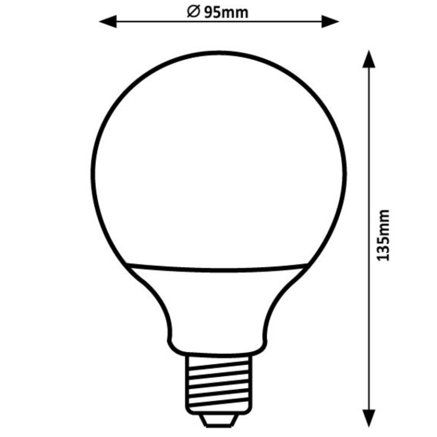 LED žárovka Rabalux 79173 s paticí E27, tvarem G95, teplým bílým světlem 2700 K a světelným tokem 1521 lm.