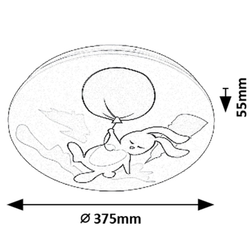 Dětské stropní svítidlo Rabalux Hopply 71409 je navrženo speciálně pro osvětlení dětských pokojů. Má kulatý tvar, kovovou konstrukci a plastové stínidlo zdobené veselým motivem králíčka a balónků. Díky teplému bílému světlu vytváří útulnou a příjemnou atmosféru. Vestavěný LED zdroj se vyznačuje dlouhou životností a energeticky úsporným provozem. Tento model je ideální pro osvětlení pokojů chlapců i dívek.
