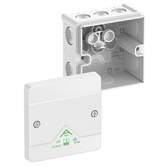 Rozbočovací krabice, se stupněm krytí IP66, Jmenovitý průřez 2,5 mm2, Certifikováno VDE (DIN EN 60670-1/-22 (VDE 0606-1/-22)), DLG (odolnost vůči čpavku), Samotěsnicí měkká přívodní membrána, M16/M20, Rozsah těsnění 4 - 16 mm, (1 prolis ze zadu, 8 vývodek z boku), Vnitřní místa pro připevnění, pro standardní instalace ve vnitřním prostoru a chráněném venkovním prostředí