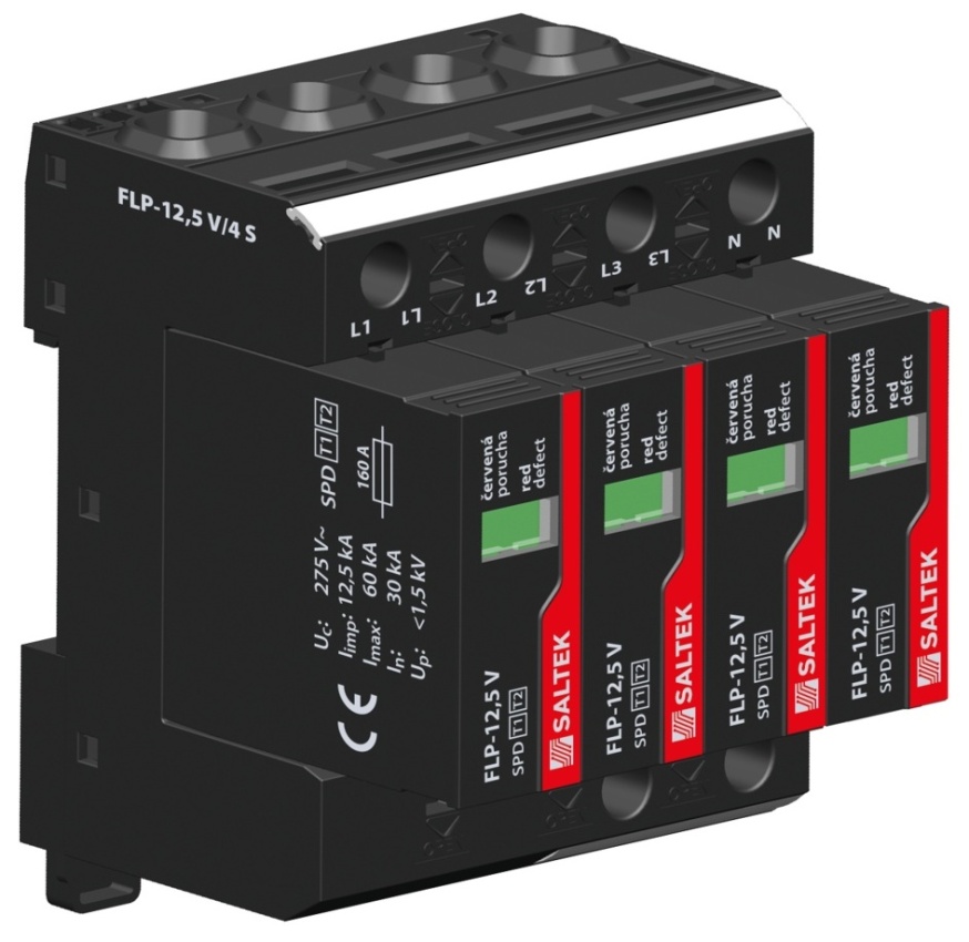 SPD typu 1 a typu 2 – svodič bleskových proudů a přepětí, vyjímatelný modul, optická a dálková signalizace poruchy, možnost blokace modulu.