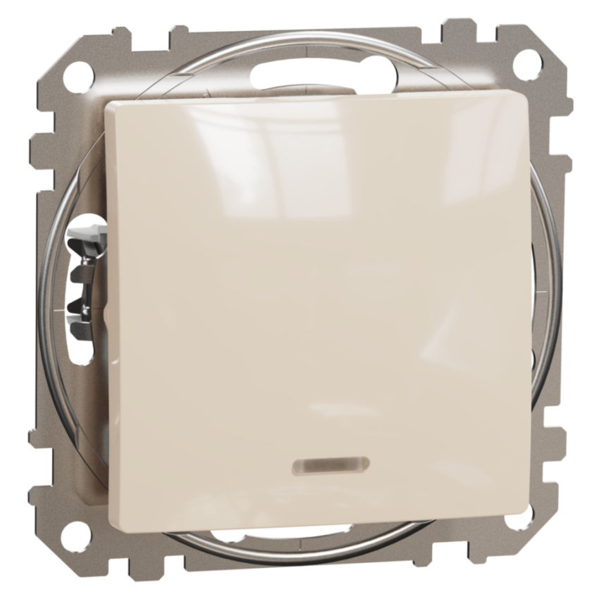 Jednopólový Spínač ř.1 s červenou signalizační kontrolkou, v béžové barvě. 10 AX - 250 V ∿