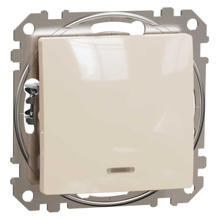 Jednopólový Spínač ř.1 s modrou orientační kontrolkou, v béžové barvě. 10 AX - 250 V ∿
