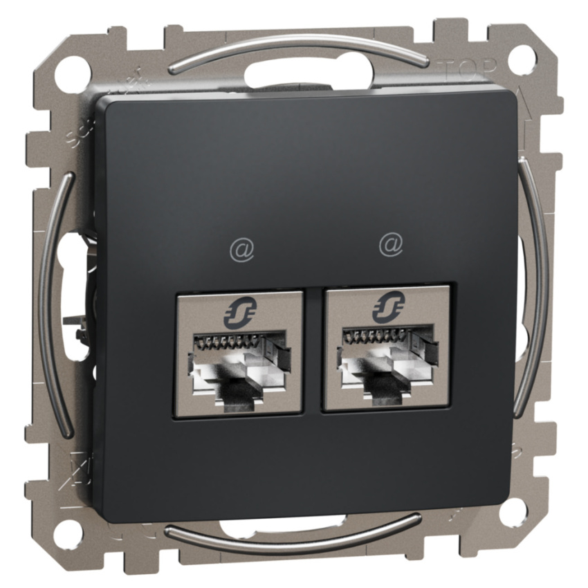 Dvojitá datová zásuvka RJ45 Kat.6A STP, v barvě antracit.