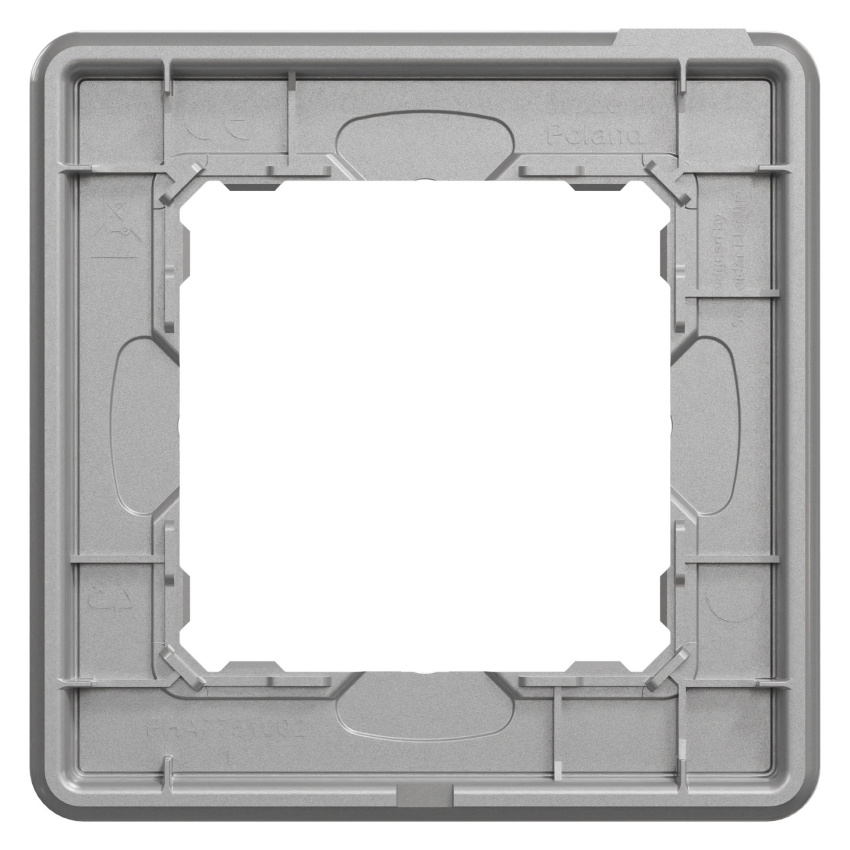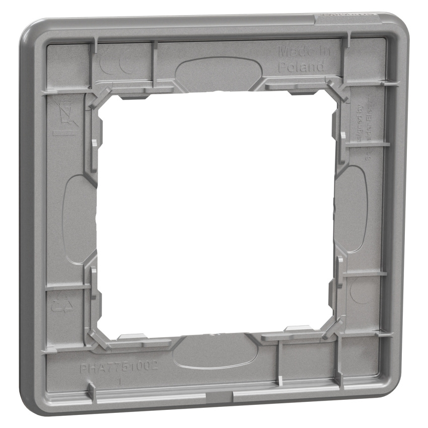 Jednonásobný krycí rámeček Schneider Electric Sedna Design Elements SDD370801U je univerzální rámeček určený pro instalaci jednoho modulu v zapuštěné montáži. Rámeček se upevňuje pomocí svorek a díky moderním liniím snadno zapadne do různých interiérů. Je vyroben z termoplastu ABS stabilizovaného proti UV záření, má povrchovou úpravu leštěný hliník (Pantone 8400C) s lesklým UV potiskem a rozměry 85 × 85 × 10 mm. Stupeň krytí je IP20, v příslušných sestavách může společně s kompatibilními přístroji dosáhnout krytí IP44 a mechanické odolnosti IK02.