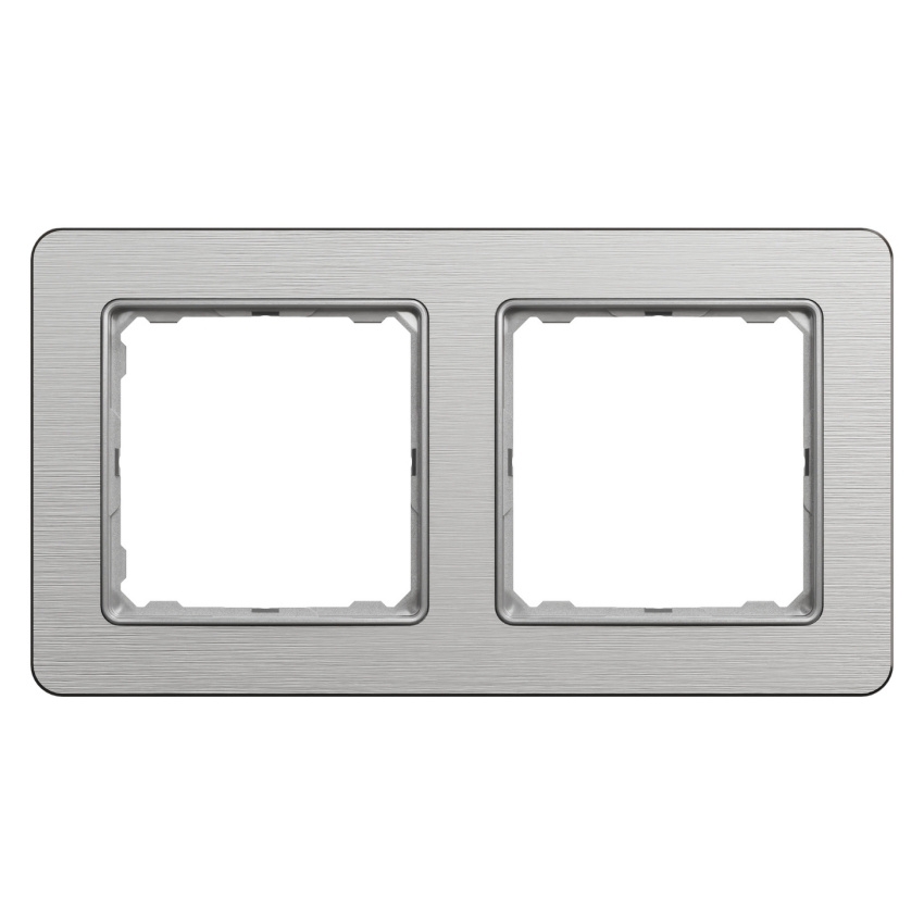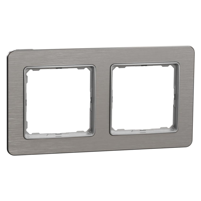 Dvojnásobný krycí rámeček Schneider Electric Sedna Design Elements SDD370802U je univerzální rámeček určený pro instalaci 2 modulů v zapuštěné montáži. Konstrukce umožňuje vodorovnou i svislou instalaci a rámeček lze použít také jako nástěnné zařízení ve spojení s povrchovými instalačními krabicemi. Je vyroben z termoplastu ABS stabilizovaného proti UV záření, v barevném odstínu leštěný hliník (Pantone 8400C) s lesklou povrchovou úpravou, a má rozměry 85 × 156 × 10 mm. Základní stupeň krytí je IP20, přičemž v kombinaci s kompatibilními vypínači a zásuvkami se stupněm krytí IP44 může sestava dosáhnout vyšší ochrany a zachovat moderní vzhled řady Sedna Design Elements.