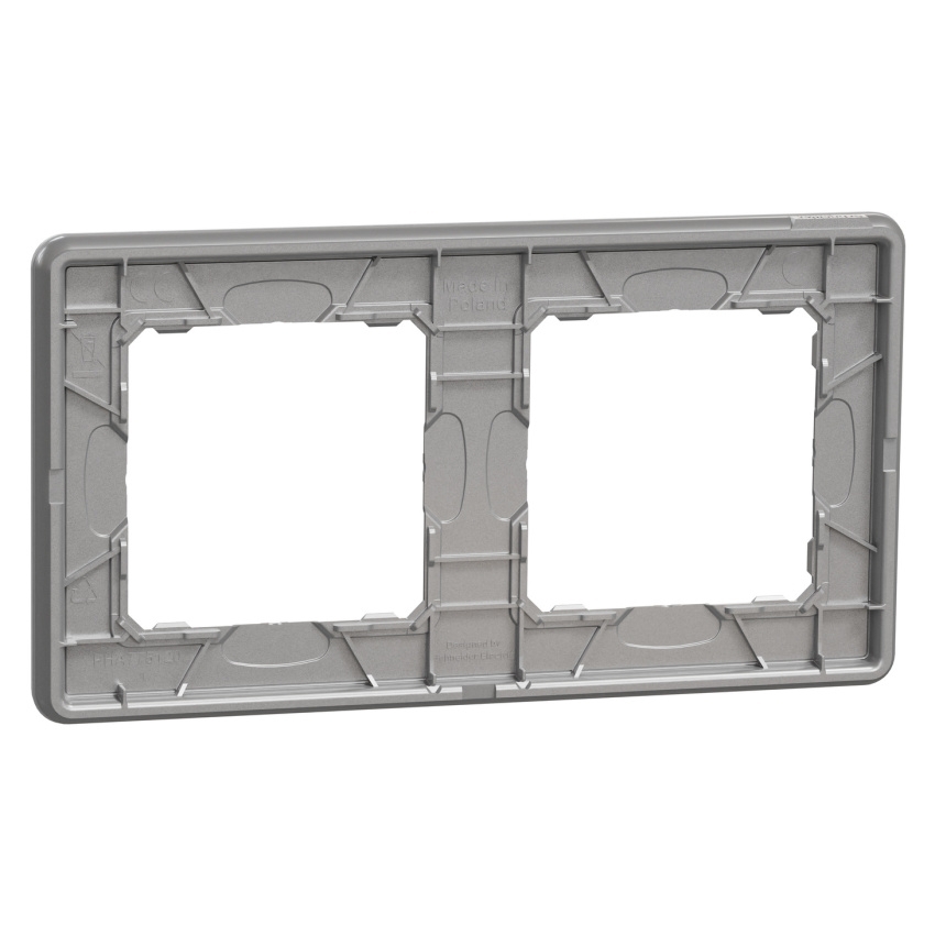 Dvojnásobný krycí rámeček Schneider Electric Sedna Design Elements SDD393802 je určený pro instalaci 2 modulů v zapuštěné montáži. Univerzální konstrukce umožňuje vodorovnou i svislou instalaci a rámeček lze použít také jako nástěnné zařízení ve spojení s povrchovými instalačními krabicemi. Je vyroben z termoplastu ABS stabilizovaného proti UV záření, v barevném odstínu Grey stone (šedý kámen) s matnou povrchovou úpravou, má rozměry 85 × 156 × 10 mm a základní stupeň krytí IP20; v kombinaci s kompatibilními vypínači a zásuvkami se stupněm krytí IP44 může celá sestava dosáhnout vyšší ochrany. Díky moderním liniím a provedení v designové řadě Sedna Design Elements rámeček snadno zapadne do současných interiérů.