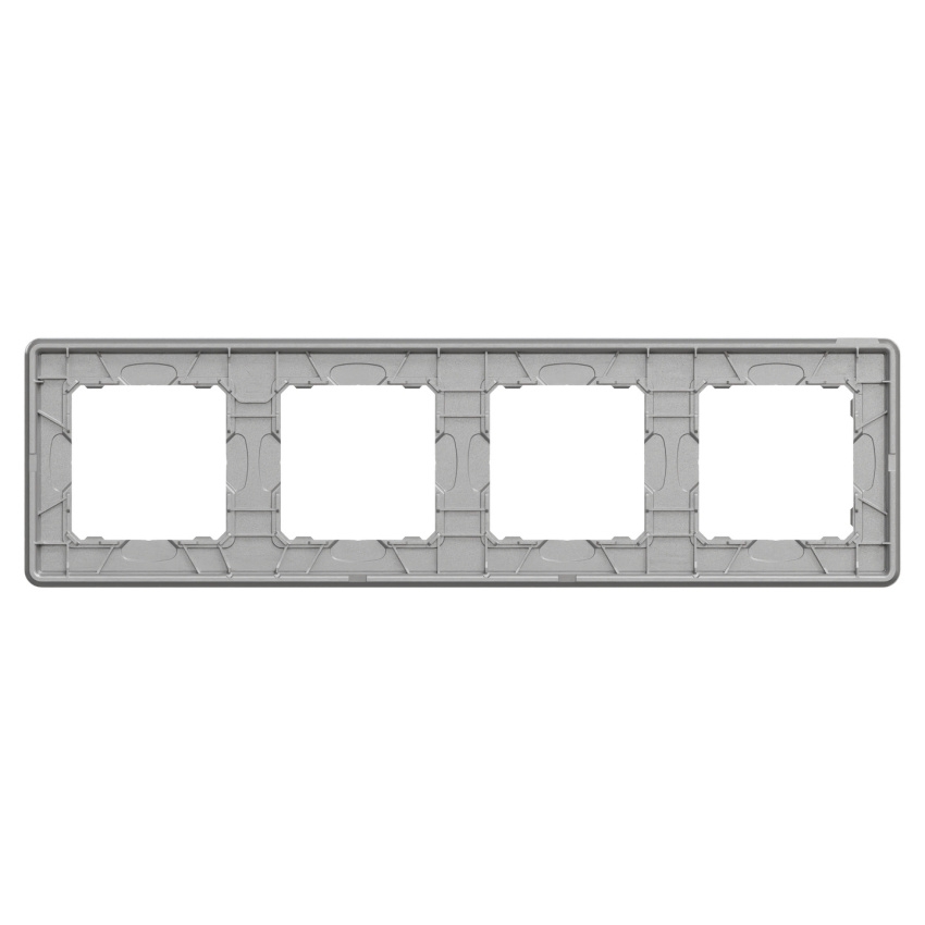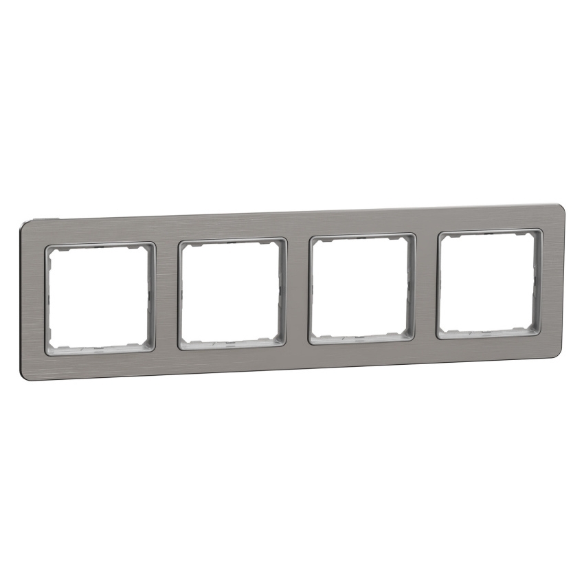 Čtyřnásobný krycí rámeček Schneider Electric Sedna Design Elements SDD370804U je určený pro instalaci 4 modulů v zapuštěné montáži. Konstrukce umožňuje vodorovnou i svislou instalaci a rámeček lze použít také jako nástěnné zařízení ve spojení s povrchovými instalačními krabicemi. Je vyroben z termoplastu ABS stabilizovaného proti UV záření v odstínu leštěný hliník (Pantone 8400C) s lesklou povrchovou úpravou a UV tiskem. Rozměry rámečku jsou 85 × 298 × 10 mm. Základní stupeň krytí je IP20, přičemž technický list uvádí možnost dosažení krytí IP44 při použití s kompatibilními přístroji. Dokument rovněž uvádí mechanickou odolnost IK02.
