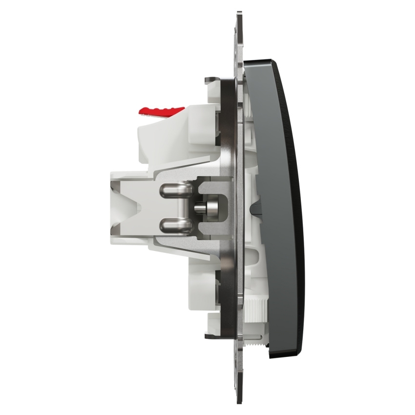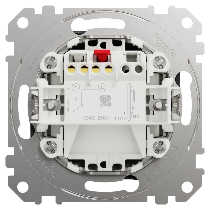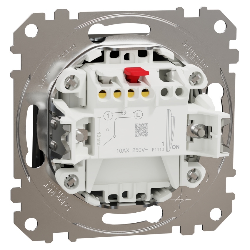 Spínač Schneider Electric Sedna Design Elements SDD172101U je jednopólové 1cestné provedení určené pro zapuštěnou montáž. Přístroj je vybaven bezšroubovými svorkami pro vodiče 1,5–2,5 mm2 a umožňuje upevnění pomocí šroubů nebo montážních stahovacích ramen v rozsahu 52–67 mm. Jmenovitý proud spínače je 10AX a jmenovité pracovní napětí činí 250 V AC při 50 Hz. Kryt je vyroben z polykarbonátu s povrchem brushed titanium (Pantone 10397C), lesklou povrchovou úpravou a UV potiskem. Rozměry mechanismu jsou 73 × 73 × 37 mm. Stupeň krytí odpovídá IP20 a mechanická odolnost IK02. Produkt splňuje normu IEC 60669-1.