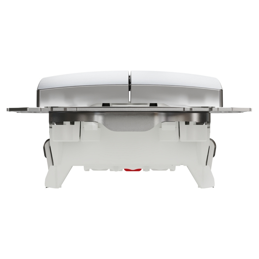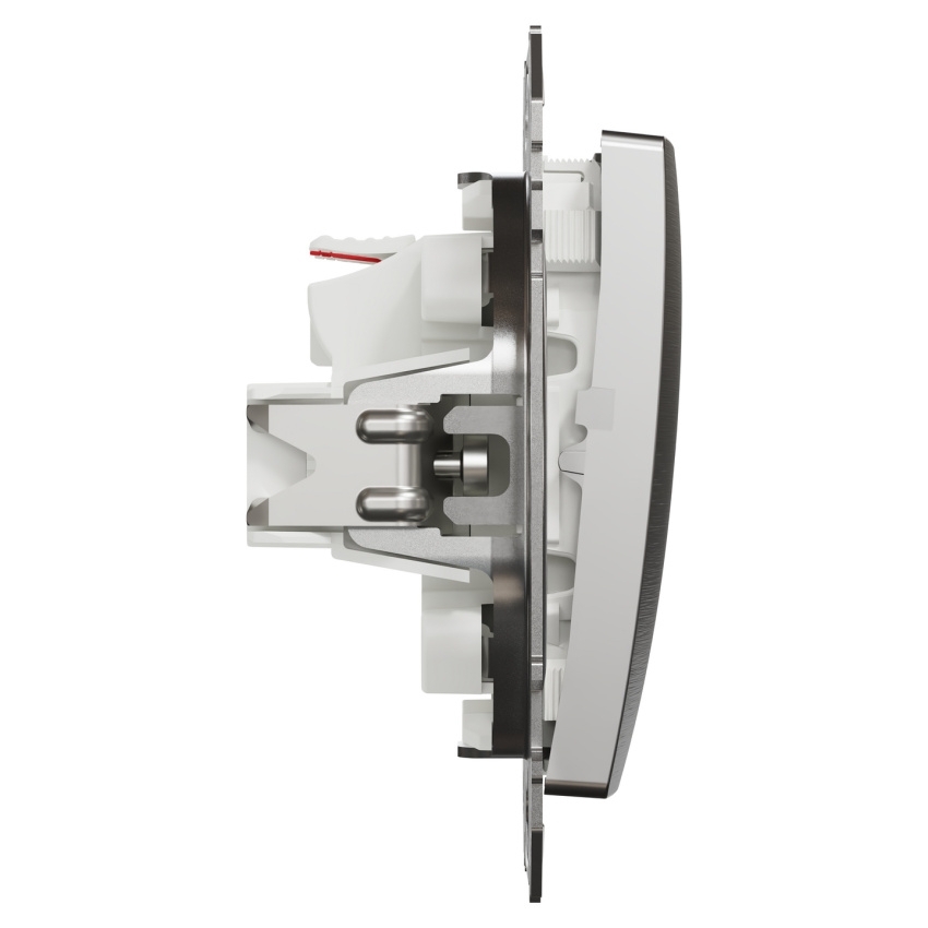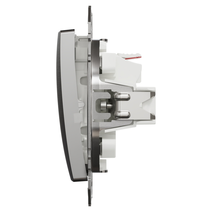 Sériový spínač ř. 5 v provedení leštěný hliník pro ovládání dvou světelných okruhů.