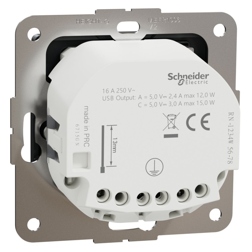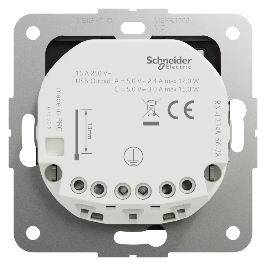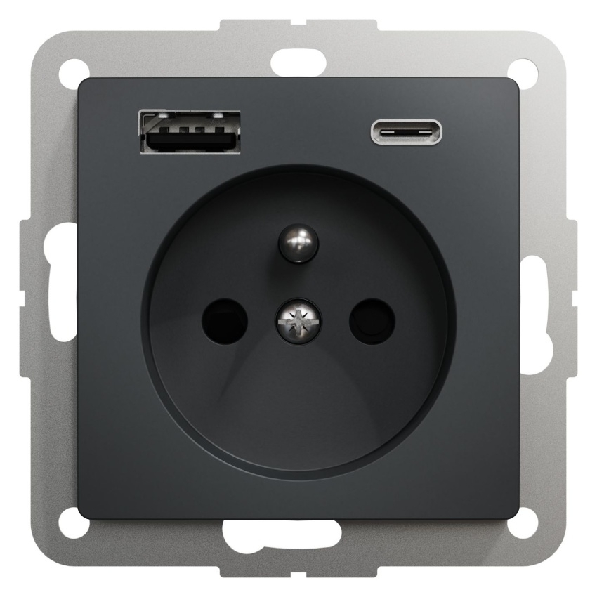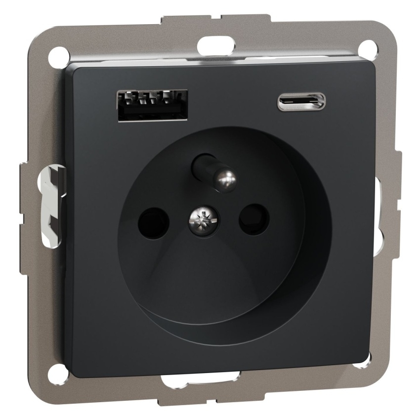 Socket-outlet, Sedna Design & Elements, with 3A USB type A+C, 16A, 250V, 2P+E pin earth, anthracite