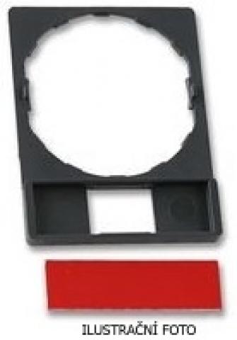 Držák štítků Harmony má černé nebo červené pozadí. Je kompatibilní s tlačítky a kontrolkami Harmony XB4, XB5 a XB7.