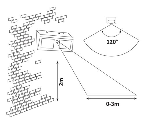Solární lampa Ostrava s pohybovým senzorem je vyrobena v černé barvě s funkčním designem. Plastové venkovní svítidlo má zabudovanou LED žárovku, která vyzařuje přirozené bílé světlo. Světelný zdroj má výkon 2,4 W, světelný tok 225 lumenů, barevnou teplotu 4 000 K a životnost 5 000 hodin. Lampa Ostrava bude skvělou volbou na terasu nebo do zahrady, ale můžete ji také namontovat téměř kdekoliv na vnější stěnu domu. Senzor detekuje pohyb ze vzdálenosti 0-3 metry při pozorovacím úhlu 120 °. Rozměry vnějšího solárního svítidla jsou následující: šířka 190 mm, výška 115 mm, vzdálenost od stěny 45 mm. Lampa Ostrava má krytí IP44, které zaručuje, že je chráněna proti vniknutí předmětů s maximálním průměrem 1 mm, jakož i proti stříkající vodě z kteréhokoliv směru.