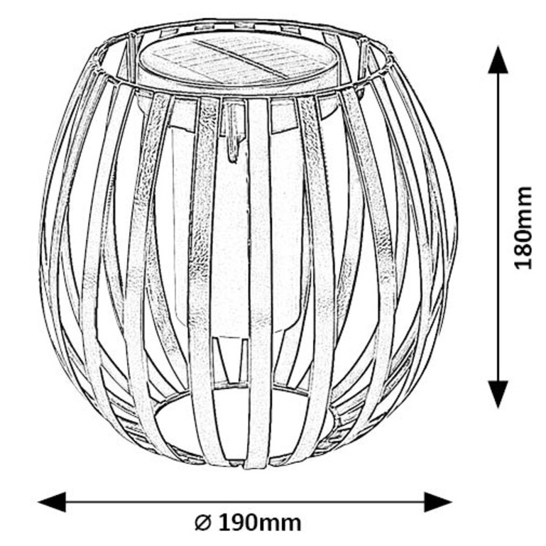 Solární dekorativní lampa Rabalux Savoca 77167 vyniká elegantním designem a příjemným teplým světlem, které dodá každé zahradě nebo terase útulnou atmosféru. Její kovový rám v černé barvě doplňuje bílé plastové stínidlo, které zajišťuje rovnoměrné rozptýlení světla. Lampa je vybavena vestavěným LED zdrojem s výkonem 1 W a světelným tokem 5 lm. Díky solárnímu napájení a vestavěné baterii (1,2 V / 300 mAh) funguje po nabití 6–8 hodin. Ovládání je snadné pomocí integrovaného spínače, který umožňuje pohodlné zapínání a vypínání světla. Stupeň ochrany IP44 zaručuje odolnost vůči prachu i stříkající vodě, takže je ideální pro venkovní použití.