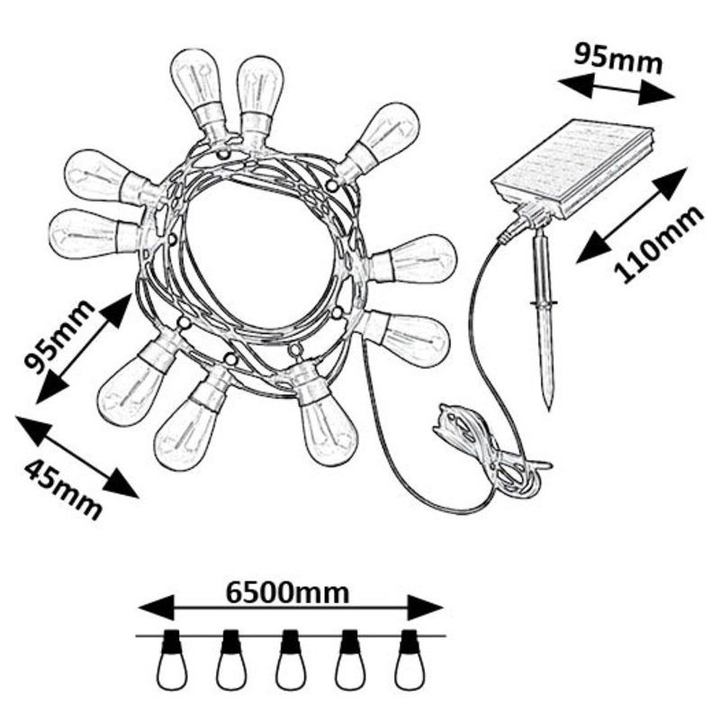 Solární venkovní LED řetězové světlo Rabalux Zirc 77165 – černé, 3,6W, 35 lm, teplá bílá, IP44