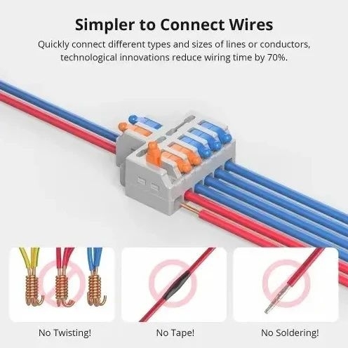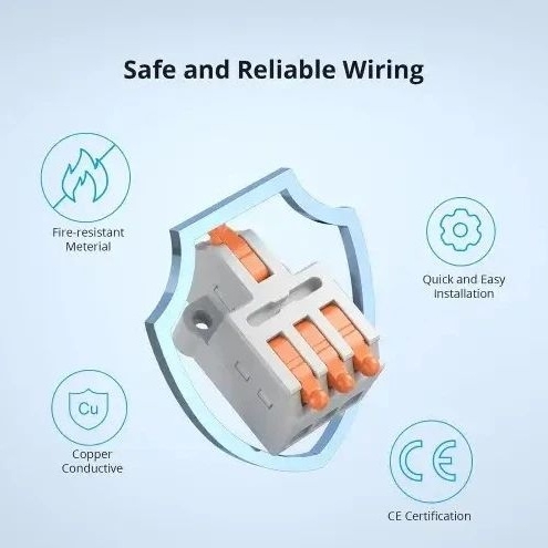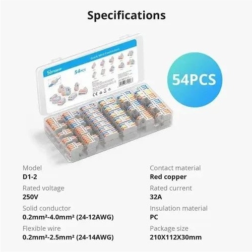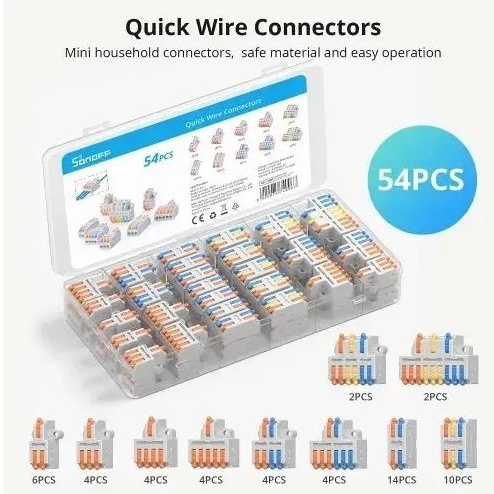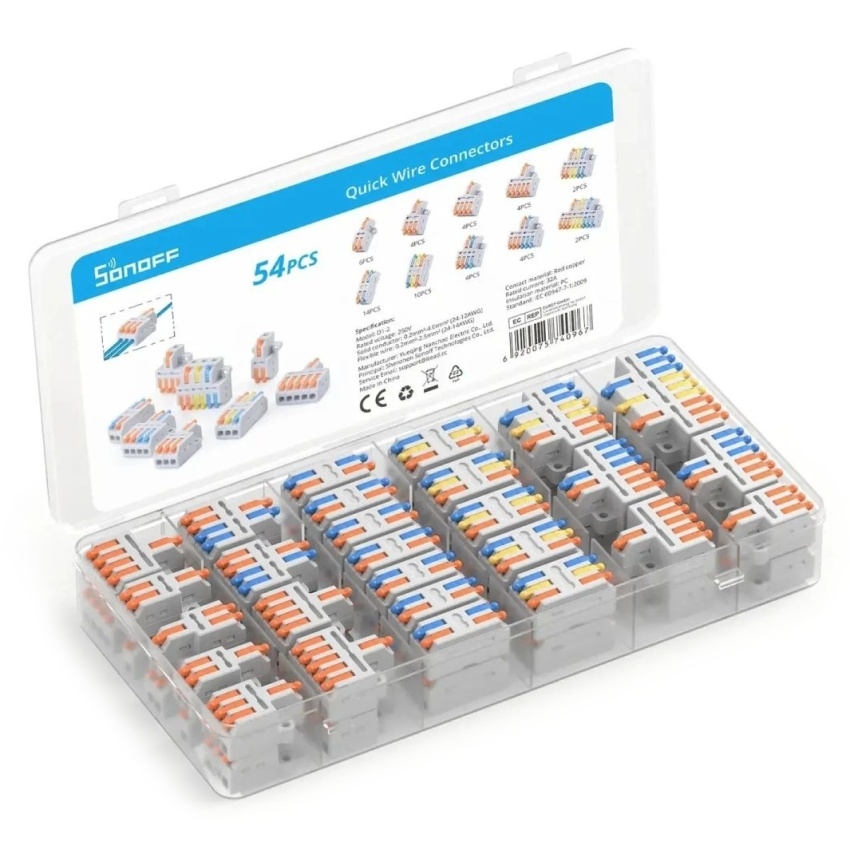 SONOFF D1-2 rychlospojky poskytují spolehlivé a čisté elektrické spoje bez potřeby pájení nebo izolační pásky díky páčkovému mechanismu. Jsou vyrobeny z ohnivzdorného PC materiálu s pocínovanými měděnými kontakty, které zajišťují vysokou vodivost a odolnost proti korozi. Díky otvorům pro šrouby na obou stranách lze spojky pevně upevnit na panel nebo do rozvodné krabice, což zvyšuje bezpečnost instalace. Kompaktní konstrukce a široká kompatibilita umožňují použití v domácích elektroinstalacích, automobilovém průmyslu i audio zařízeních.