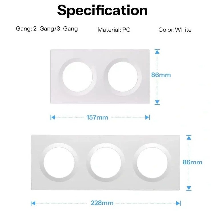 SONOFF EF2G rámeček nástěnného vypínače umožňuje elegantní a bezchybnou instalaci dvou pouzder SONOFF vedle sebe v 2-násobné EU krabici. Rámeček je vyroben z odolného bílého PC materiálu s nízkým profilem a podporuje DIY integraci 3D tištěných senzorových doplňků jako pohybové senzory, senzory teploty a vlhkosti nebo bezdrátová tlačítka. Montáž je možná horizontálně i vertikálně, přičemž rámeček eliminuje mezery a vyosení typické pro tradiční vícegangu, čímž zajišťuje čistý a minimalistický vzhled interiéru.