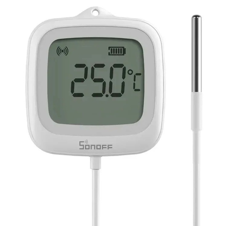SONOFF SNZB-02LD IP65 Zigbee LCD inteligentní teploměr kombinuje přehledný 2,2" LCD displej s 1,5 m nerezovou sondou, která umožňuje přesné měření teploty v kapalinách, nádržích, lednicích a úzkých prostorách. Zařízení podporuje Zigbee 3.0 protokol a je kompatibilní s huby SONOFF, Echo a SmartThings, což umožňuje vytváření chytrých automatizací a scén. Díky ochraně IP65 je vhodný pro použití ve vlhkých a stříkajících prostředích a v aplikaci eWeLink umožňuje ukládání až 180 dní historie s možností exportu dat.