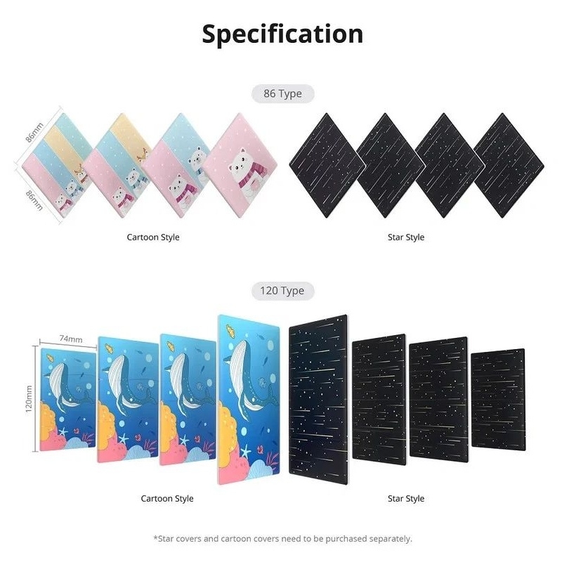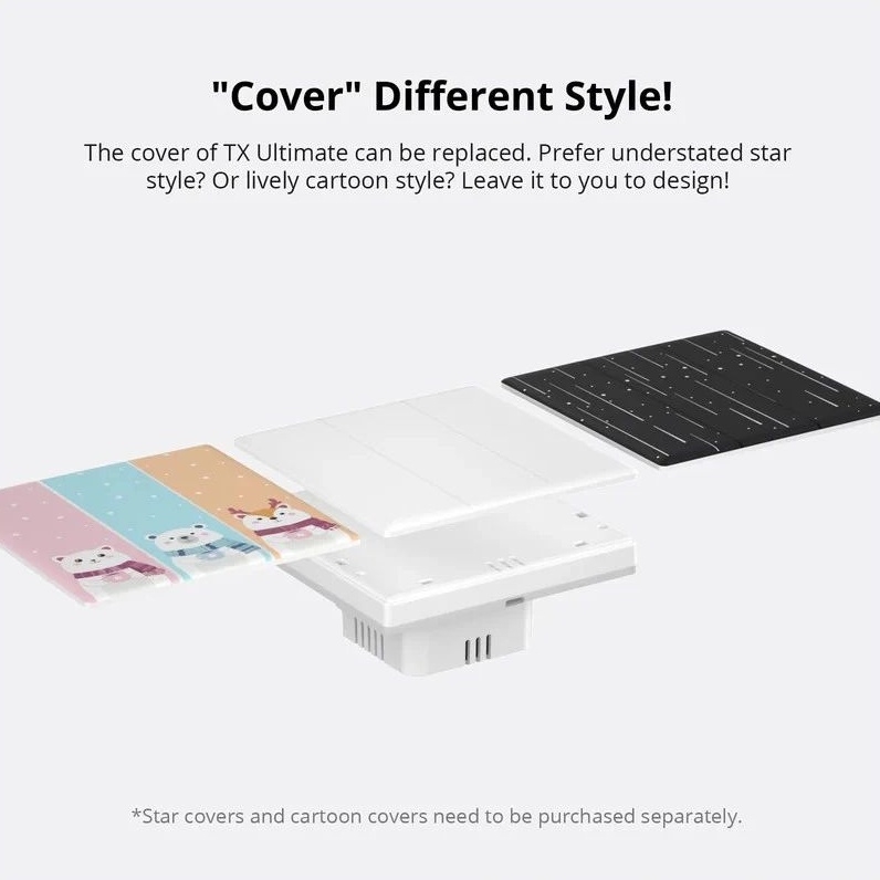 SONOFF TX Ultimate Smart Touch Wall Switch Cover v rozměru 86 mm a s jedním tlačítkem nabízí hravý Cartoon design vhodný do dětských pokojů a kreativních prostor. Kryt je vyroben z odolných materiálů, snadno se čistí a montuje bez nářadí nacvaknutím na kompatibilní smart vypínač TX Ultimate. Přesné osazení zachovává citlivost dotykového ovládání a umožňuje rychlou změnu vzhledu bez nutnosti výměny celého zařízení.