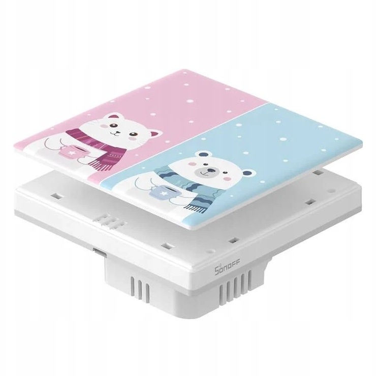 SONOFF TX Ultimate Smart Touch Wall Switch Cover v rozměru 86 mm a s 2 tlačítky nabízí hravý Cartoon design vhodný do dětských pokojů a herních prostor. Kryt je vyroben z vysoce kvalitních materiálů s hladkým a odolným povrchem, který se snadno čistí a přesně sedí na smart vypínače řady TX Ultimate. Montáž je rychlá a bez nářadí díky zacvakávacímu systému, který nevyžaduje zapojování vodičů, což umožňuje snadnou změnu vzhledu bez nutnosti výměny celého zařízení.