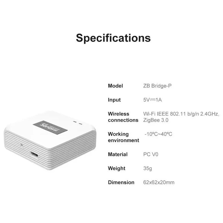 SONOFF Zigbee Bridge Pro funguje jako pokročilý hub pro správu a zabezpečení Zigbee zařízení v domácnosti. Umožňuje připojení až 128 podřízených zařízení a podporuje lokální provádění scén a časových plánů bez nutnosti internetového připojení. Díky duálnímu protokolu Zigbee 3.0 a Wi-Fi integruje širokou škálu zařízení SONOFF a umožňuje ovládání přes Amazon Alexa a Google Assistant.