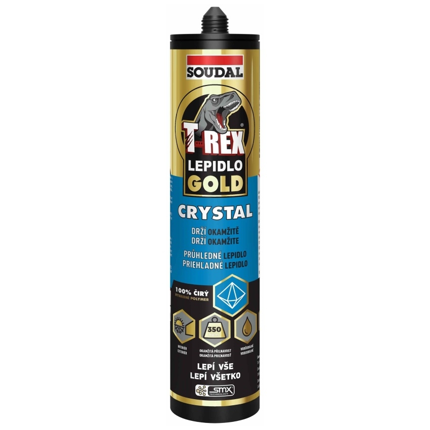SOUDAL T-REX GOLD CRYSTAL je pružné a pevné montážní lepidlo s vynikající počáteční přilnavostí, které vytváří neviditelný spoj. Lepidlo je odolné vůči povětrnostním vlivům a přilne i na vlhký povrch, což umožňuje jeho použití v širokém spektru aplikací. Je vhodné pro lepení odlišných materiálů na běžné stavební podklady a neobsahuje rozpouštědla.