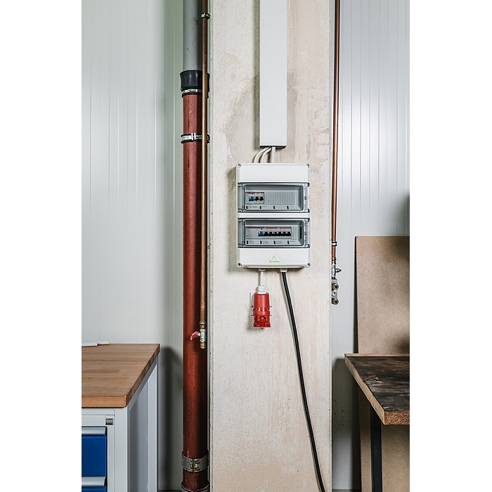 Malý rozvaděč Spelsberg AK 24 New s krytím IP65 je určen pro vnitřní instalace v rezidenčním a komerčním prostředí. Nabízí dvě řady pro celkem 24 modulů a kompaktní rozměry 290 × 407 × 124 mm. Je vybaven moderními bezšroubovými svorkovnicemi PE/N s push-in technologií pro snadné zapojení bez použití nářadí. Konstrukce umožňuje otočení rozvaděče o 180°, horní část obsahuje samotěsnicí dvojité membránové vývodky a spodní část metrické průchodky pro univerzální přívody vedení. Součástí dodávky jsou uzavírací zátky, krycí a popisovací proužky.