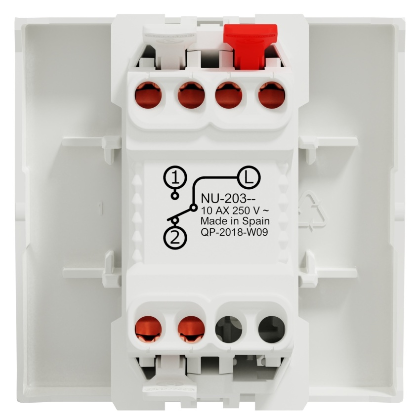 Switch, New Unica, 1-pole 2-way, 10AX, 2 modules, screwless terminals, antibacterial, IP4X, white