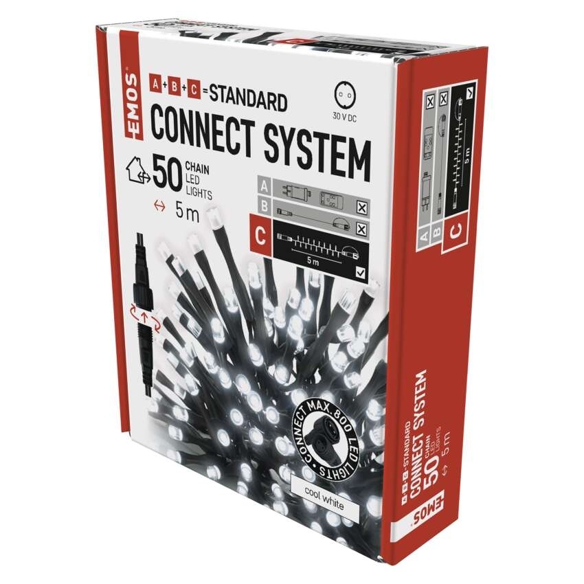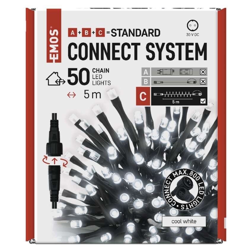 EMOS Standard LED spojovací vánoční řetěz, 5 m, venkovní i vnitřní, studená bílá