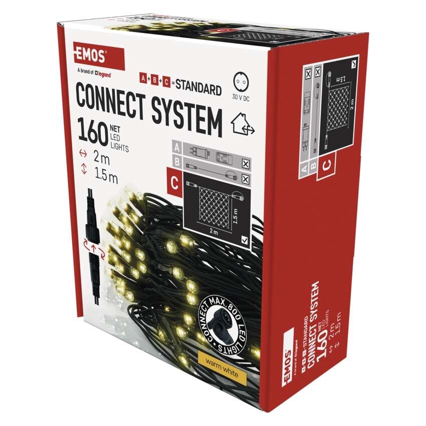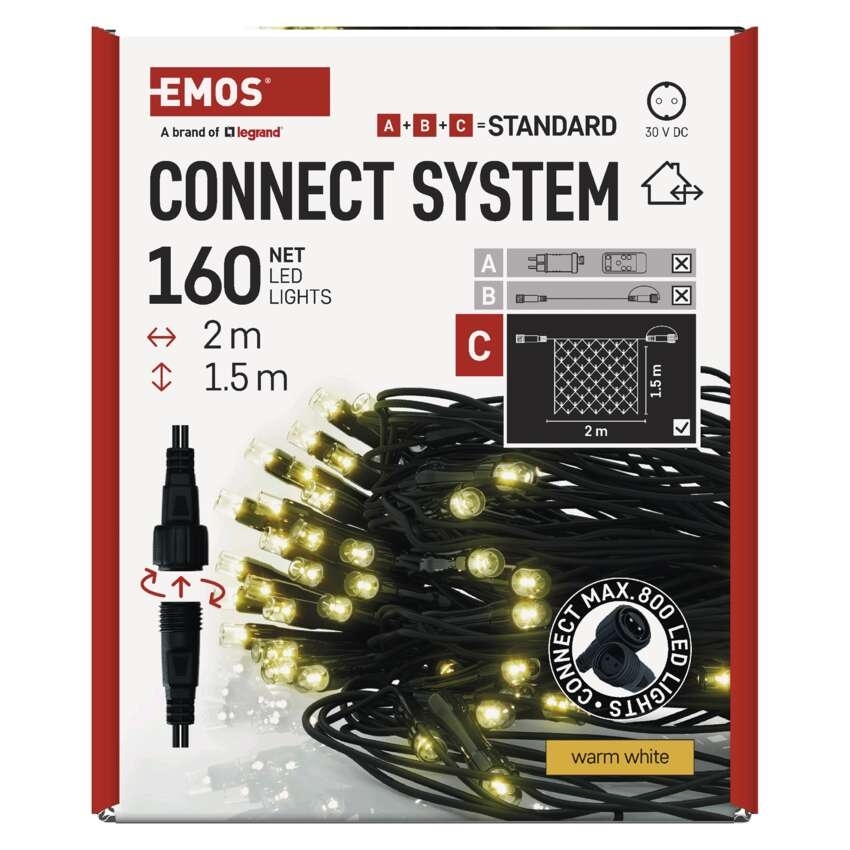 Standard LED spojovací vánoční řetěz – síť, 1,5x2 m, venkovní, teplá bílá