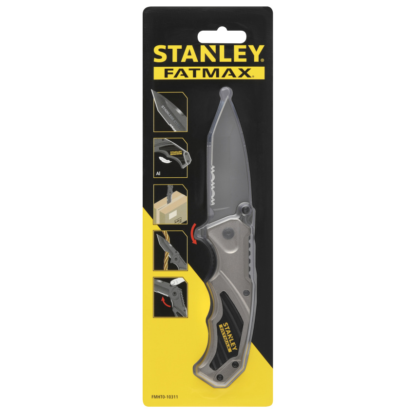 Víceúčelový nůž s pevnou kovovou konstrukcí. Otevírací čepel má vroubkované ostří a délku 80 mm. Pro bezpečné používání je vybaven zámkem, který blokuje otevřenou čepel.