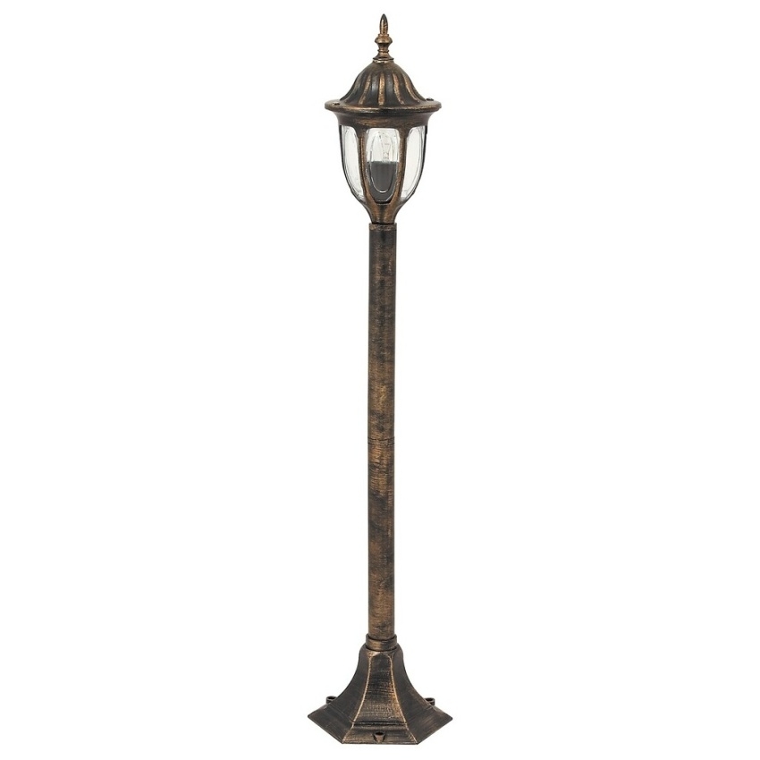 Venkovní stojanová lampa Milano ve starožitné zlaté barvě po osazení úspornou LED žárovkou ještě minimalizuje odběr elektřiny. Pokud nemáte k dispozici elektrické napájení tam, kde potřebujete svítidlo umístit, pořiďte si solární lampy, které fungují na principu nabíjení slunečním zářením.