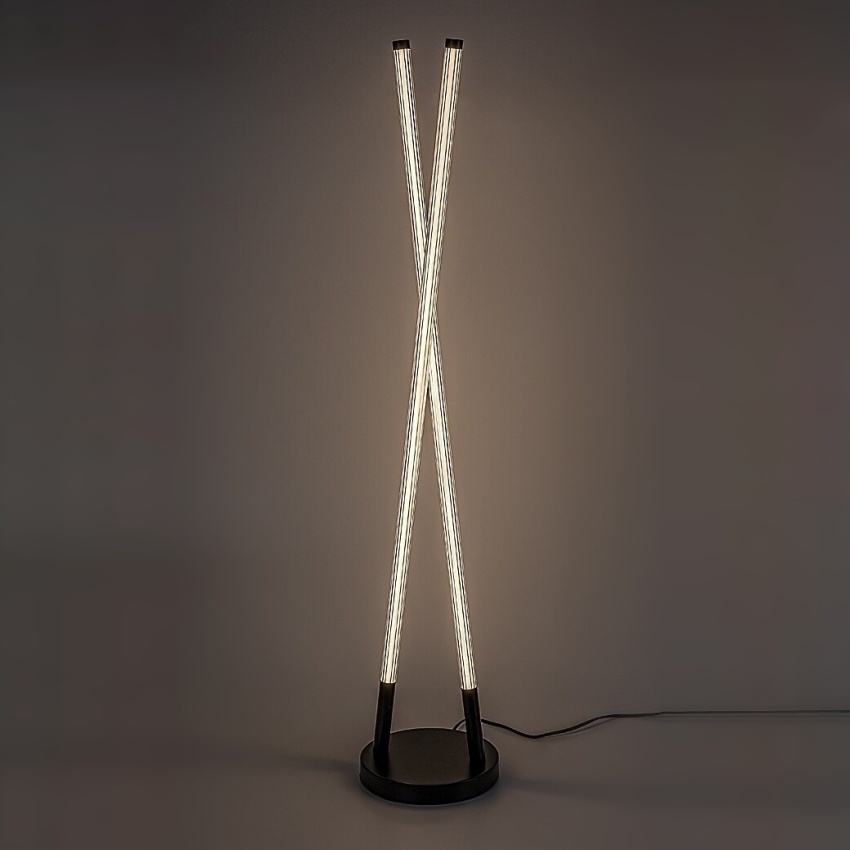Stojací LED lampa Rabalux Nivaro 74166 v elegantním černém provedení zaujme minimalistickým designem a vysokou funkčností. Tvoří ji dvě svislé trubicové části z kovu, které se spojují v úhlu, čímž vytvářejí originální, geometricky čistý vzhled. Bílé akrylové stínidlo rozptyluje světlo rovnoměrně a příjemně, zatímco kulatá černá základna zajišťuje stabilitu konstrukce. Lampa má vestavěný LED zdroj o výkonu 28 W se světelným tokem 3050 lm (3130 lm bez stínítka) a vyzařuje teplé bílé světlo o teplotě 3000 K, které vytváří útulnou a harmonickou atmosféru v místnosti. Díky úsporné LED technologii nabízí dlouhou životnost a nízkou spotřebu energie. Ovládání je řešeno pohodlným nožním spínačem. Ideální volba pro moderní obývací pokoj, ložnici či jídelnu.