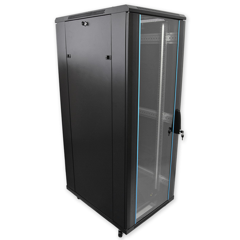 Stojanový rozvaděč PSD má osazené přední skleněné dveře a zadní dveře perforované rovné. Rozvaděč je určený pro instalace, kde je požadovaný rychlý přehled o stavu uvnitř umístěných zařízení. Při zvýšených nárocích na ventilaci je možné horní kryt rozvaděče osadit ventilační jednotkou. Kombinace předního skla a zadní perforace zajišťuje pro nucené chlazení optimální proudění vzduchu celým tělesem rozvaděče. Odnímatelné bočnice i dveře umožňují pohodlný přístup do rozvaděče během instalace. Na konstrukci rozvaděče jsou použity plechy 2,0, 1,5 a 1,2 mm, což zajišťuje vysokou pevnost a dostatečnou tuhost celé konstrukce.