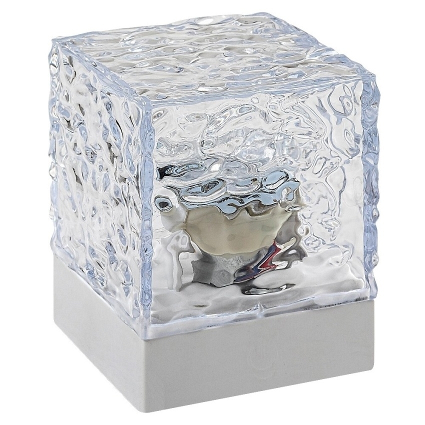 Designové dekorativní svítidlo Rabalux Cubiko 76022 přináší moderní a hravou atmosféru do každého interiéru. Kompaktní kostkový tvar v bílé barvě s průhledným plastovým stínítkem působí elegantně a univerzálně, díky čemuž se hodí do obývacího pokoje, ložnice i dětského pokoje. Vestavěné RGB LED osvětlení nabízí širokou škálu barev a možnost regulace jasu pomocí dálkového ovladače. Lampa je vybavena také funkcí paměti a nočního světla pro větší komfort. Napájení zajišťují tři baterie AA (nejsou součástí balení), přičemž provozní doba činí přibližně 6–8 hodin. Díky svým malým rozměrům je ideální jako doplňkové nebo dekorativní osvětlení na stolek či polici.