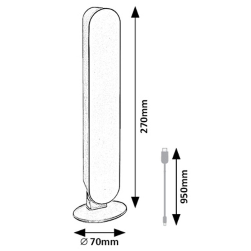Moderní dekorativní LED lampa Rabalux Parker 76016 přináší elegantní spojení minimalistického designu a barevného světelného efektu. Černé plastové tělo doplňuje bílé stínítko a kulatý podstavec, které společně vytvářejí decentní, avšak výrazný doplněk interiéru. Vestavěný LED zdroj o výkonu 3 W nabízí dlouhou životnost až 10 000 hodin a umožňuje RGBW osvětlení, takže si můžete zvolit jak teplé bílé světlo, tak i barevné podsvícení podle nálady. Pomocí dálkového ovladače lze lampu pohodlně stmívat i měnit barvy. Svítidlo je napájeno přes USB kabel, díky čemuž je ideální pro použití v obývacím pokoji, ložnici i dětském pokoji.