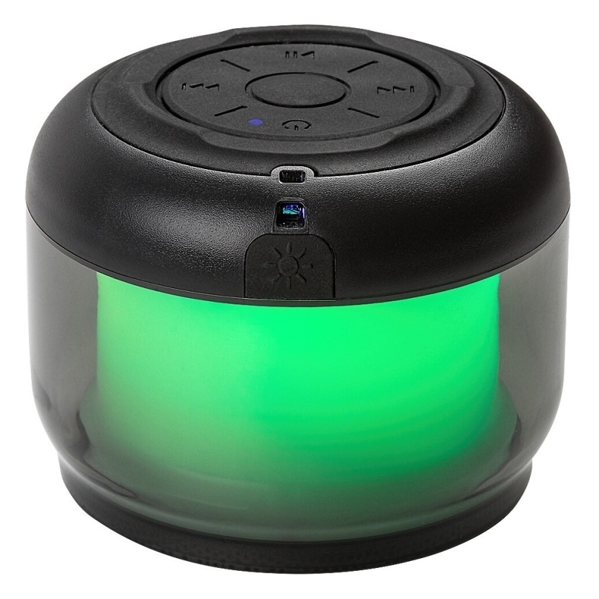 Stolní LED lampa Rabalux Radelia 76110 kombinuje dekorativní osvětlení s praktickými funkcemi. Její válcovité tělo z černého plastu doplňuje průhledné stínítko, které rovnoměrně rozptyluje světlo. Vestavěný LED zdroj o výkonu 3 W nabízí RGB podsvícení, takže lze měnit barvy podle nálady či prostředí. Díky integrovanému Bluetooth reproduktoru s výkonem 5 W a impedancí 3 Ω lze přehrávat oblíbenou hudbu přímo z mobilního zařízení. Lampa je napájena vestavěnou baterií (3,7 V / 500 mAh), která se nabíjí přibližně 2 hodiny a poskytuje až 3 hodiny provozu. Součástí je také AUX kabel pro připojení dalších zařízení. Díky lehké konstrukci je snadno přenosná a skvěle se hodí na noční stolek, poličku či pracovní stůl v dětském pokoji, ložnici i obýváku.