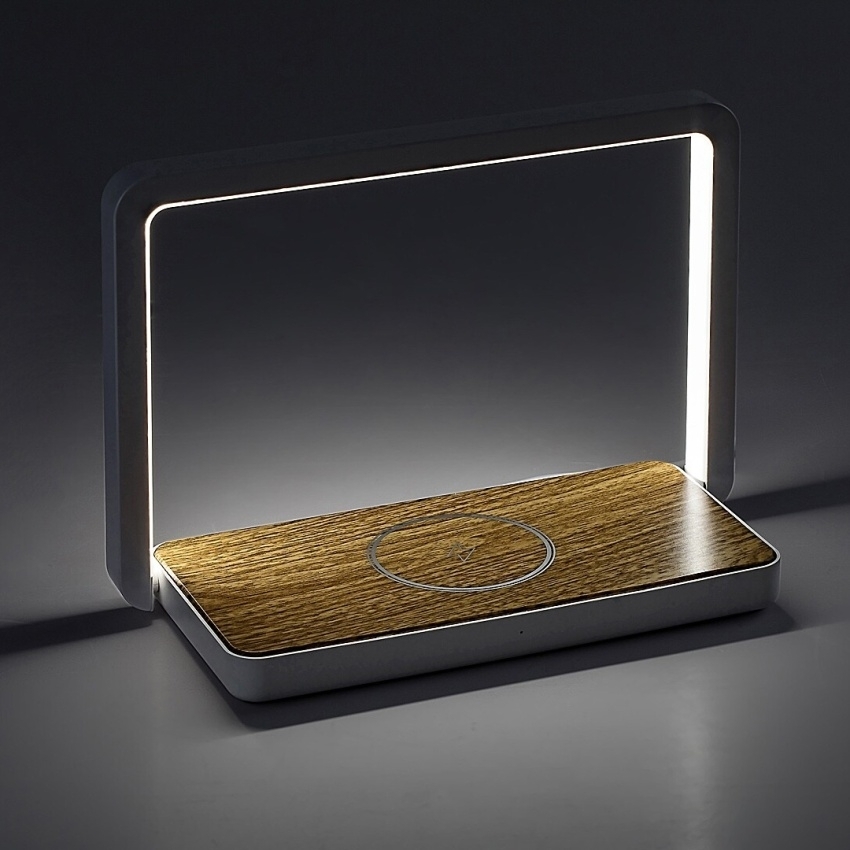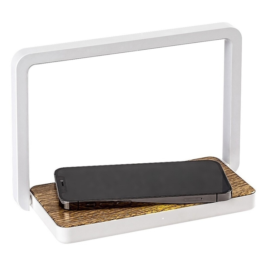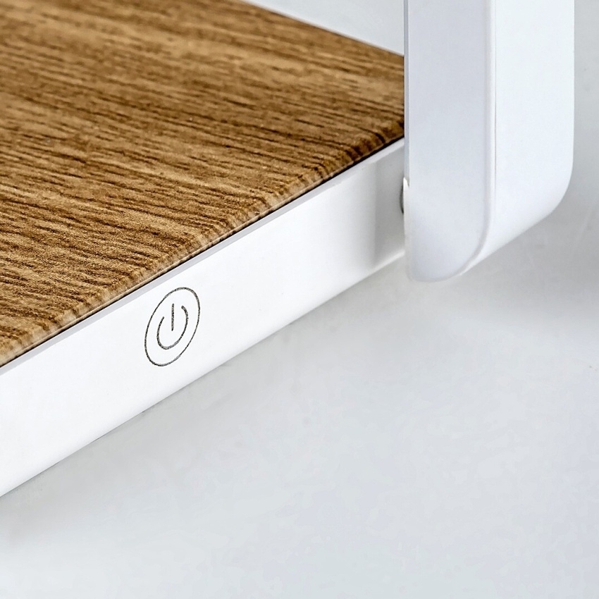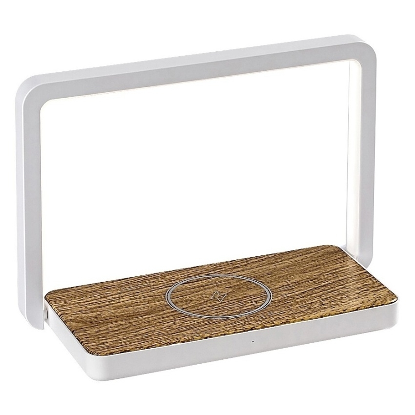 Stolní LED lampa Rabalux Buldus 76005 v moderním stylu spojuje praktičnost a elegantní design. Je vyrobena z plastu v kombinaci matné bílé a dubové barvy a svým tenkým, skládacím provedením připomíná elegantní tablet. Svítidlo je vybaveno vestavěným LED světelným zdrojem o výkonu 4 W, který vyzařuje teplé bílé světlo s teplotou 3000 K. Lampa nabízí světelný tok 160 lm (930 lm bez stínítka) a životnost až 20 000 hodin. Díky dotykovému spínači je možné nastavit jas ve třech úrovních. Model je stmívatelný, napájený přes USB a zároveň vybavený bezdrátovou nabíječkou kompatibilní s protokolem QI. Ideální doplněk na pracovní stůl či noční stolek.