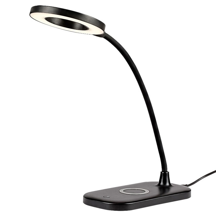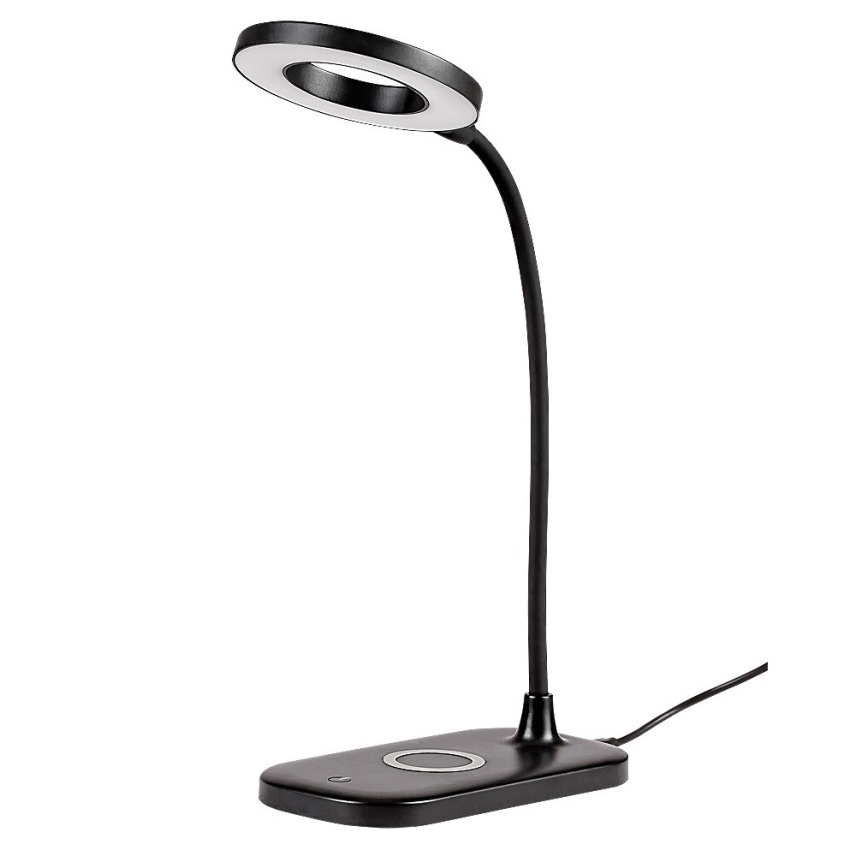 Moderní stolní LED lampa Rabalux Hardin 74013 je ideálním řešením pro pracovní stůl, noční stolek nebo dětský pokoj. Elegantní plastové provedení v černé barvě s bílým stínítkem působí minimalisticky a zároveň prakticky. Díky dotykovému ovládání můžete jednoduše měnit teplotu světla v rozsahu 2700–6000 K (teplé, neutrální nebo studené bílé světlo) a také upravit jas podle aktuální potřeby. Vestavěný LED zdroj o výkonu 5 W poskytuje světelný tok 210 lm (720 lm bez stínítka) a má dlouhou životnost 20 000 hodin. Lampa je vybavena bezdrátovou nabíječkou pro telefony s podporou standardu QI a lze ji také napájet pomocí USB kabelu. Kompaktní rozměry umožňují snadné umístění i v menších prostorech.