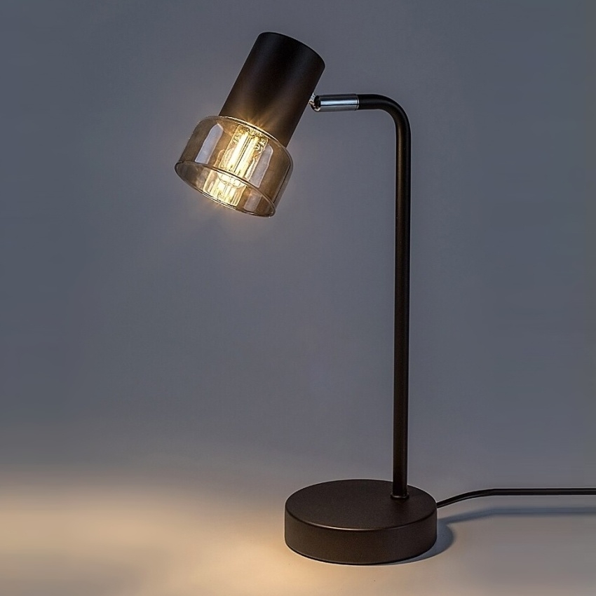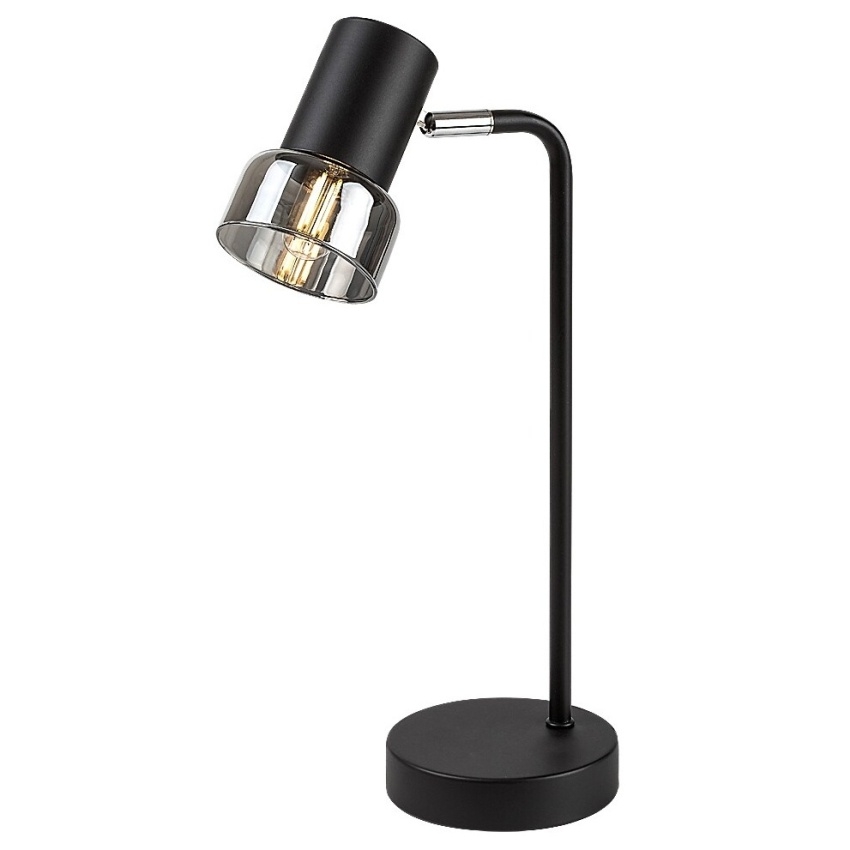 Stolní lampa Rabalux Hatice zaujme svým minimalistickým a elegantním designem, který dokonale zapadne do moderních interiérů. Celokovové tělo v černé barvě doplňuje štíhlé válcovité rameno zakončené kouřovým skleněným stínítkem. Díky průsvitnému sklu zůstává žárovka viditelná, což dodává lampě dekorativní charakter – doporučuje se proto použít stylovou žárovku s originálním tvarem. Otočná hlavice umožňuje nasměrovat světlo podle potřeby, a proto je model Hatice ideální volbou pro pracovní stůl, ložnici či obývací pokoj. Svítidlo je vybaveno kabelovým spínačem a určeno pro žárovku s paticí E14 a maximálním příkonem 15 W. Dodává se bez světelného zdroje.