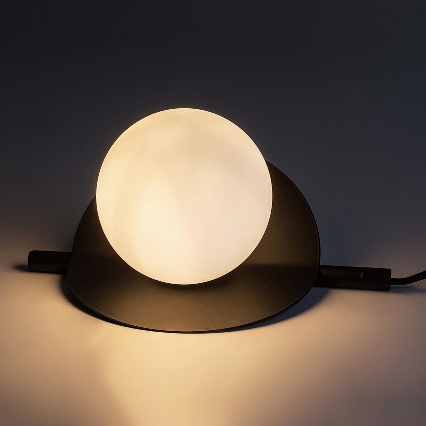 Designová stolní lampa Rabalux Jules zaujme svým industriálním stylem a moderním minimalistickým provedením. Černé kovové tělo s tenkou válcovou tyčí doplňuje elegantní kulaté stínítko z bílého skla, které připomíná měsíc a dodává svítidlu jemný dekorativní charakter. Díky kompaktním rozměrům je lampa ideální jako doplňkové osvětlení do obývacího pokoje, ložnice, kuchyně či jídelny. Svítidlo je vybaveno kabelovým spínačem pro snadné ovládání a je určeno pro žárovku s paticí G9 a maximálním příkonem 5 W. Dodává se bez světelného zdroje.