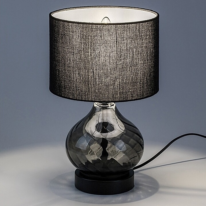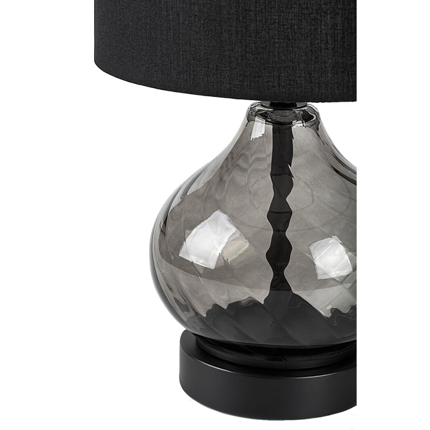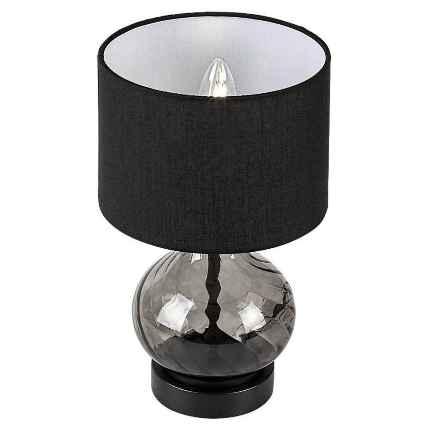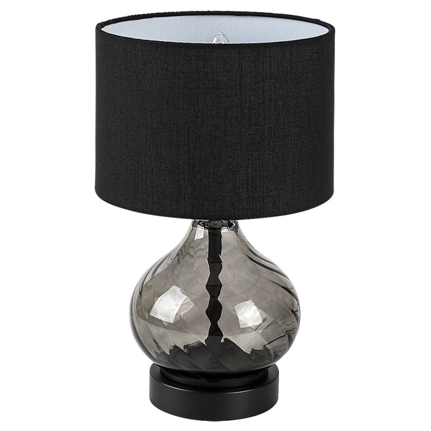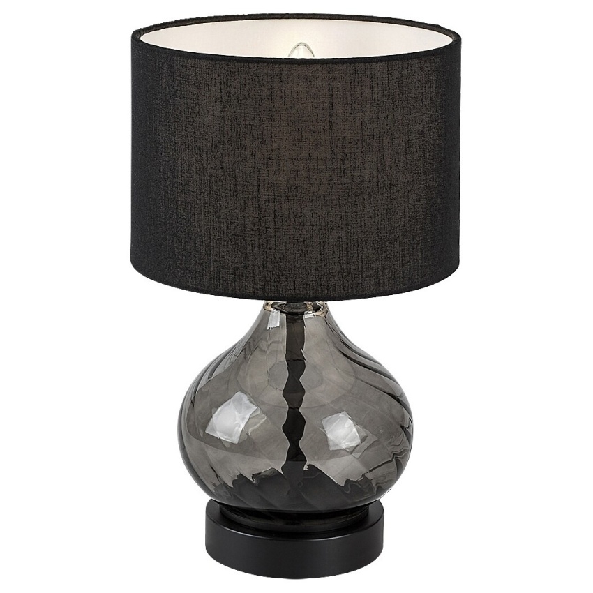 Stolní lampa Rabalux Pirelo 74034 zaujme svým elegantním designem a nadčasovou kombinací kouřového skla a černého textilu. Tělo lampy má tvar cibulové kupole a je vyrobeno z kouřového skla se zkrouceným vzorem, který dodává celkovému vzhledu jemnou dynamiku. Válcovité stínidlo z černé textilie je otevřené nahoře i dole a vytváří příjemné rozptýlené světlo. Lampa je doplněna kulatou dekorativní základnou v barvě ladící se zbytkem konstrukce. Ideální jako doplňkové nebo náladové osvětlení do obývacího pokoje či ložnice. Lampa se ovládá kabelovým vypínačem a je určena pro jednu žárovku s paticí E14 a maximálním příkonem 25 W. Dodává se bez světelného zdroje.