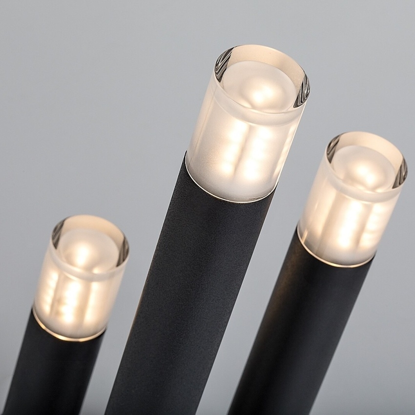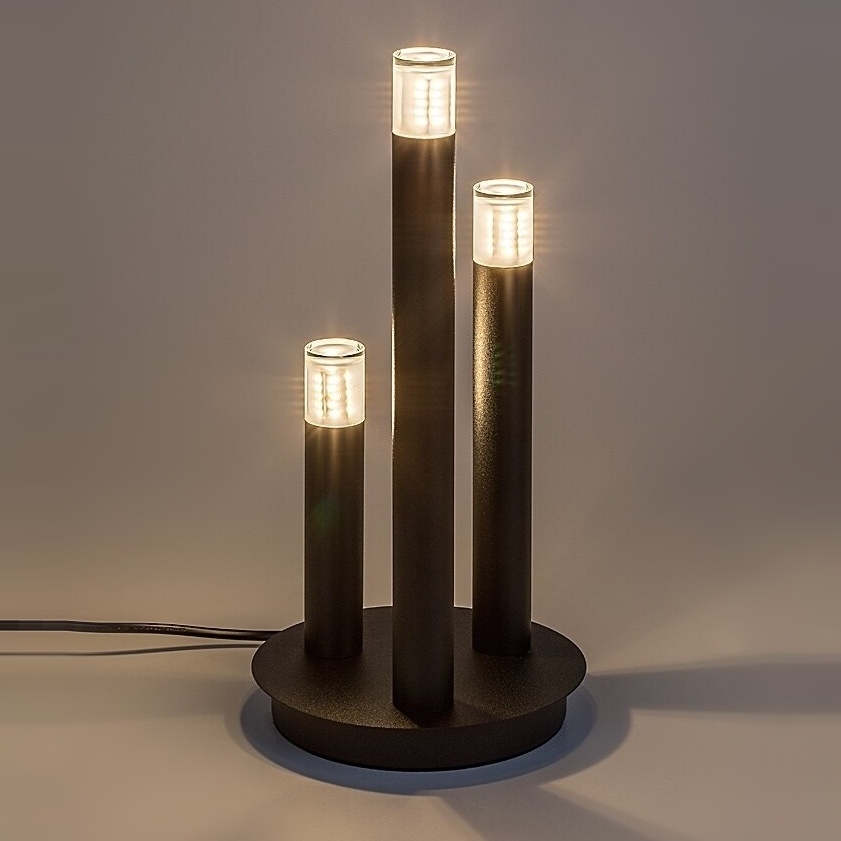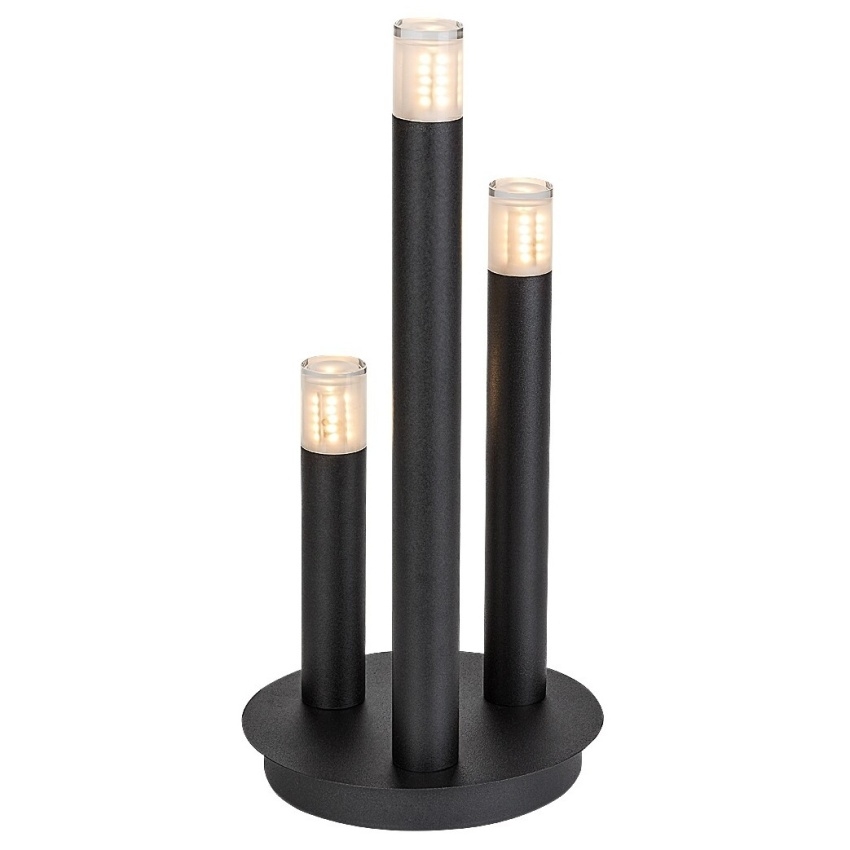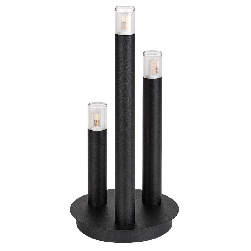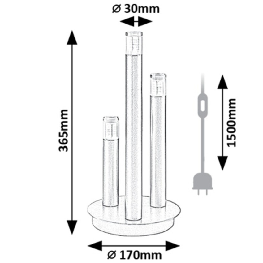 Moderní stolní lampa Rabalux Ramira zaujme svým originálním designem, který kombinuje eleganci a minimalistické prvky. Kovové tělo v černé barvě doplňují tři průhledná akrylová stínítka umístěná na hlavicích různých výšek, což lampě dodává dojem trojice svíček. Tento jedinečný model je ideálním doplňkem moderního interiéru – skvěle zapadne do obývacího pokoje, jídelny, ložnice nebo kuchyně. Lampa poskytuje jemné, příjemné světlo a slouží nejen jako zdroj osvětlení, ale i jako stylový dekorativní prvek. Svítidlo je vybaveno kabelovým spínačem a určeno pro tři žárovky s paticí G9 a maximálním příkonem 5 W. Dodává se bez světelných zdrojů.