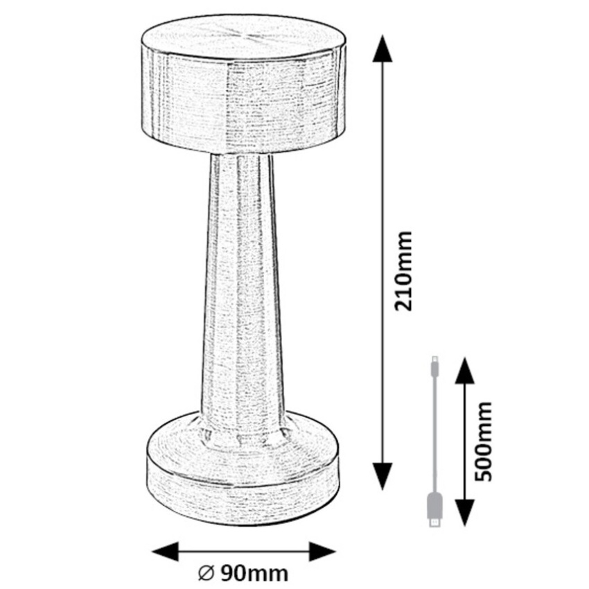Stolní LED lampa Rabalux Senan 74207 v elegantním zlatém provedení zaujme svým moderním a minimalistickým designem. Kovové tělo lampy doplňuje bílé plastové stínítko, které zajišťuje jemné a rovnoměrné rozptýlení světla. Díky svým kompaktním rozměrům a čistým liniím se hodí do obývacího pokoje, ložnice i pracovny. Vestavěný LED světelný zdroj o výkonu 2,7 W poskytuje světelný tok 40 lm (60 lm bez stínítka) a umožňuje nastavení teploty světla ve třech úrovních – 3000 K, 4000 K a 6000 K. Ovládání probíhá pomocí dotykového spínače, který zajišťuje snadné přepínání mezi režimy. Lampa má vestavěnou 3,7V baterii s kapacitou 1200 mAh a lze ji nabíjet pomocí USB kabelu. Díky kombinaci kovu a elegantního zlatého povrchu se Senan stane stylovým doplňkem každého interiéru.